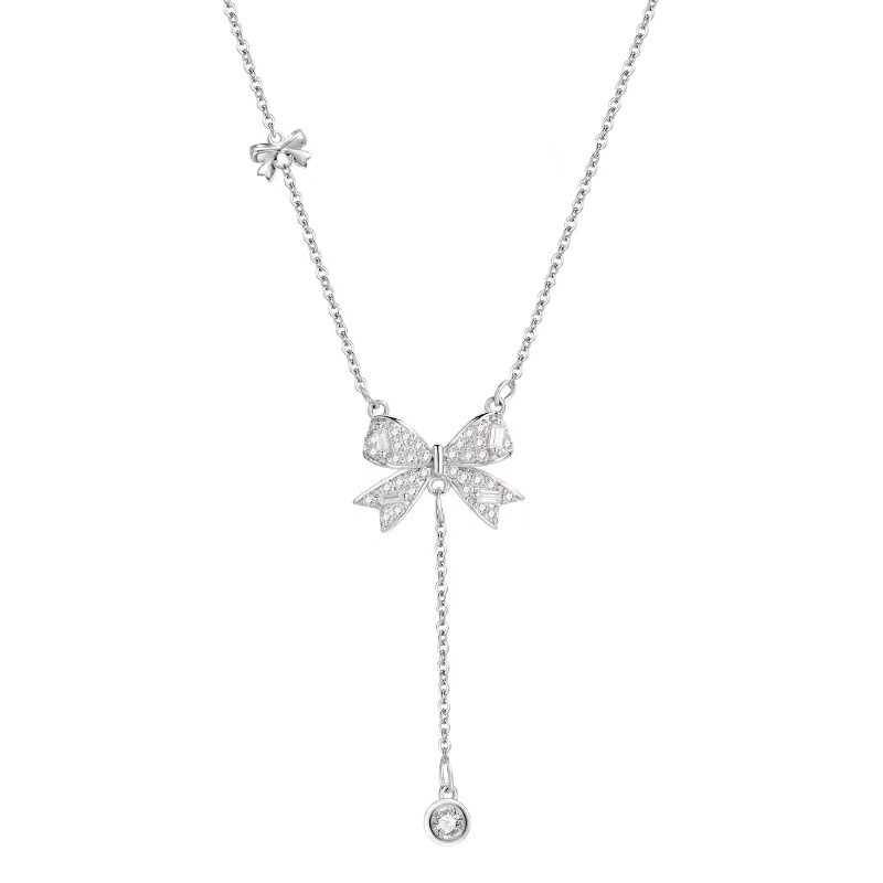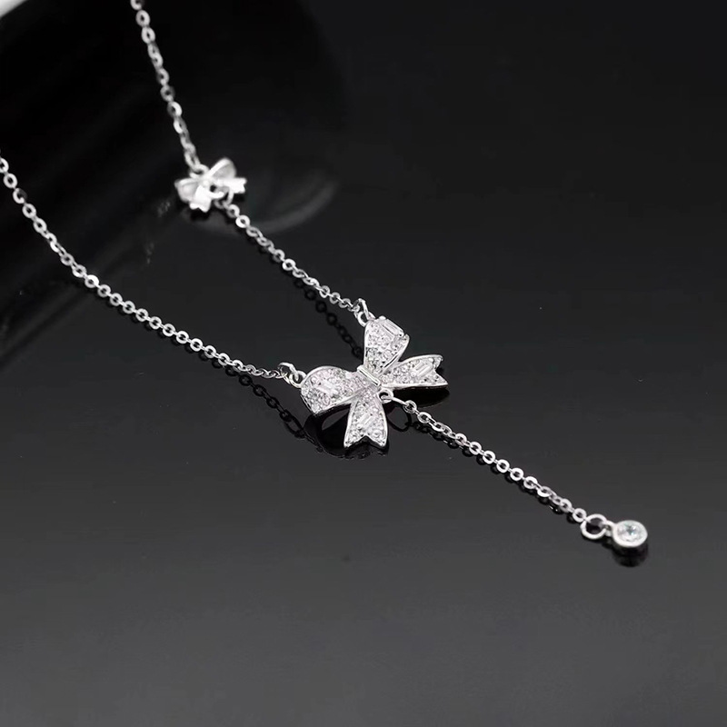 Product information:Treatment Process: Diamond Color: white gold Chain style: cross chain Material: Silver Applicable population: Female Size: Bow height is about 11mm, width is about 13mm