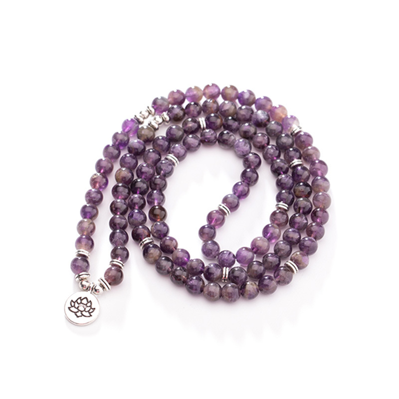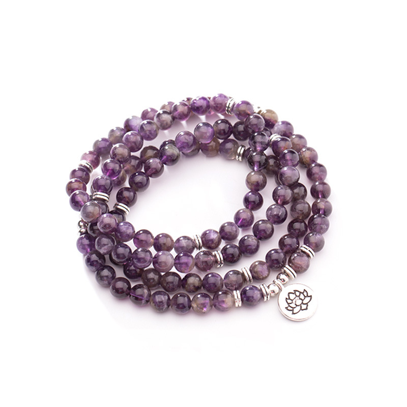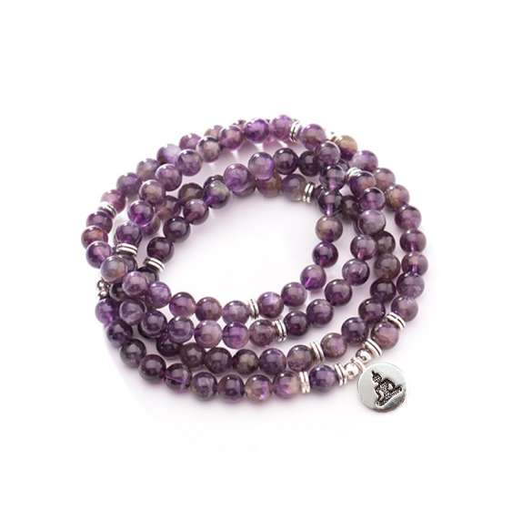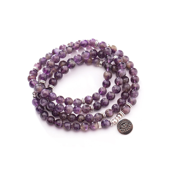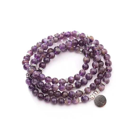 All styles are purple crystal bracelets, the difference between the pendant pattern of the bracelet, Buddha, tree of life, lotus, eyes
