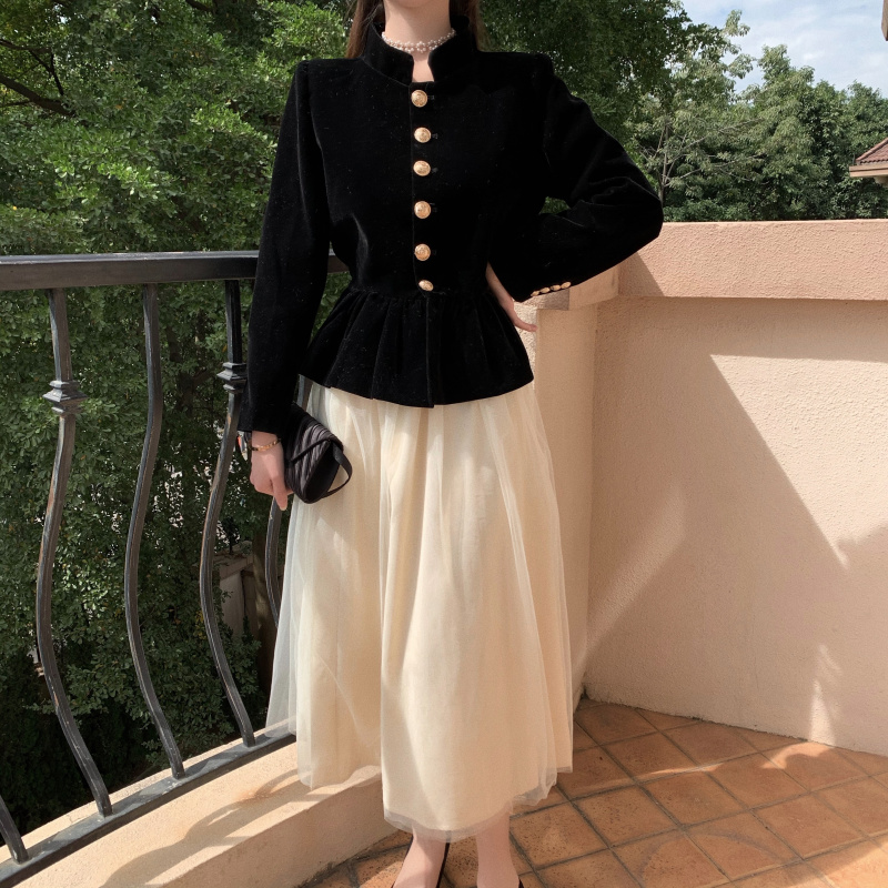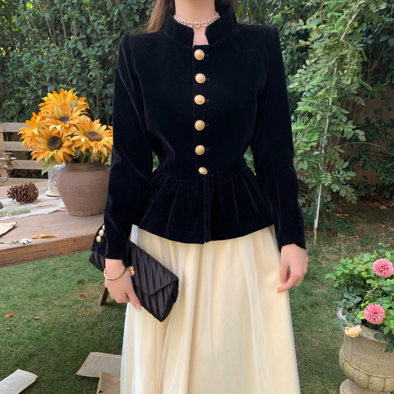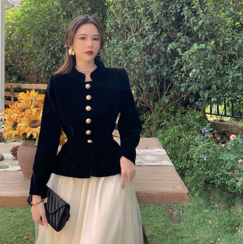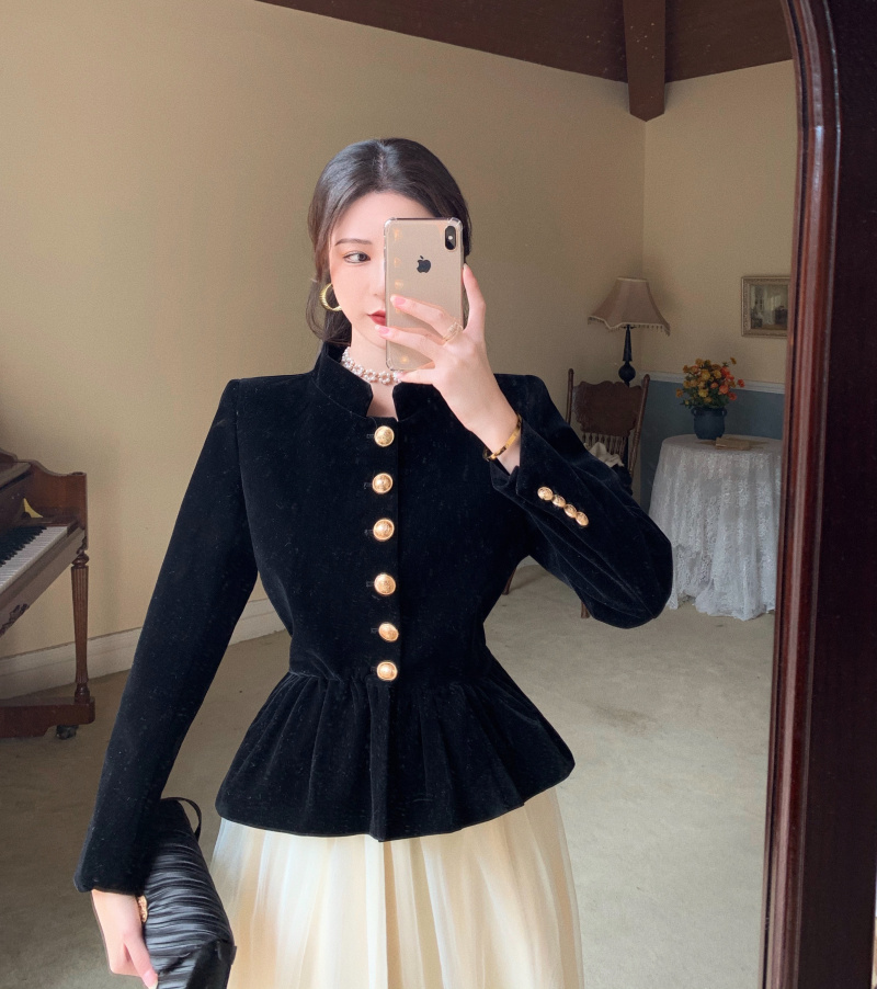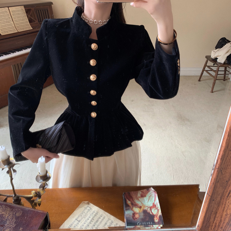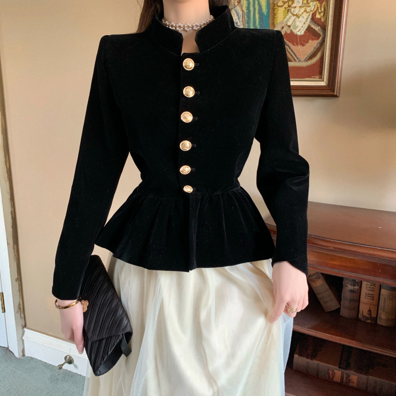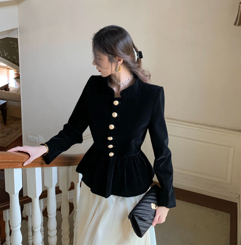 Short Coat Women's Court Style Velvet Black Versatile Leisure Autumn And Winter