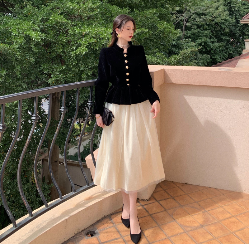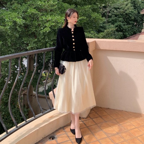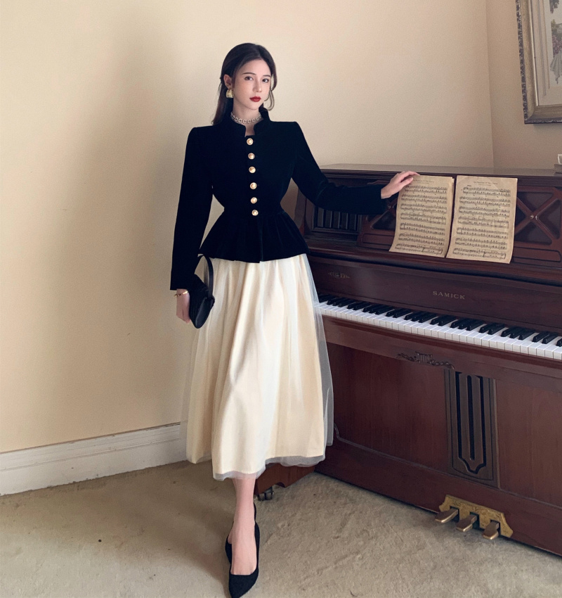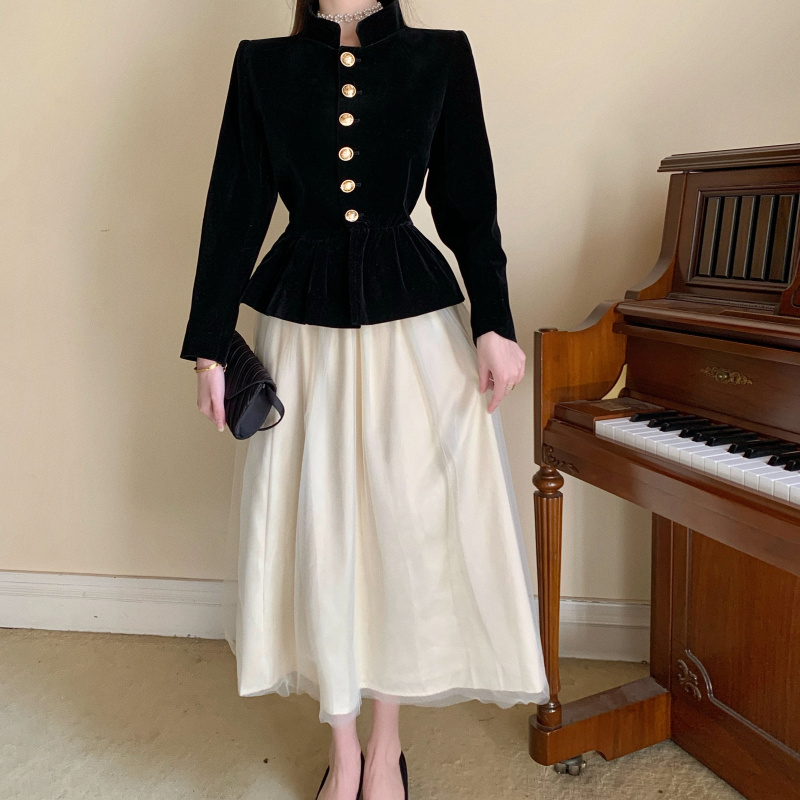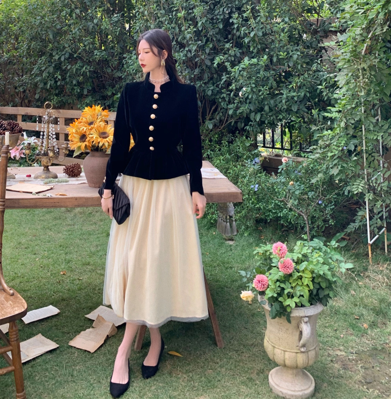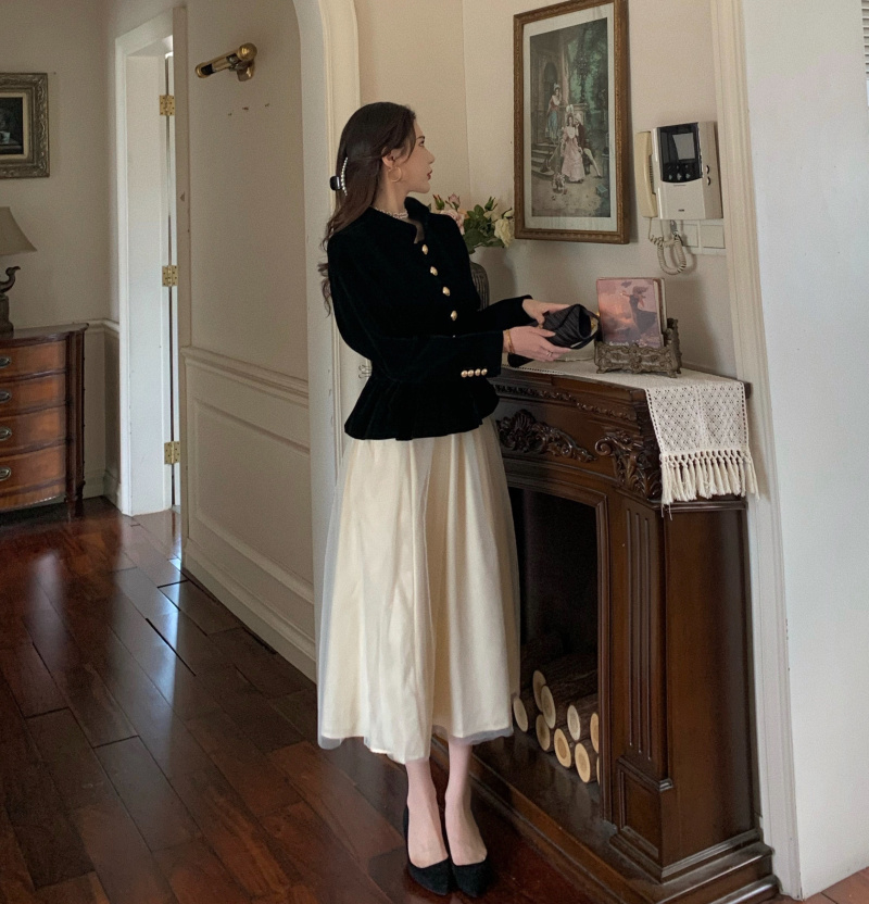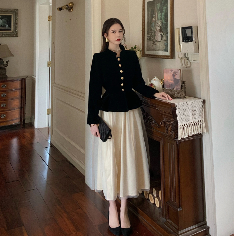 Short Coat Women's Court Style Velvet Black Versatile Leisure Autumn And Winter