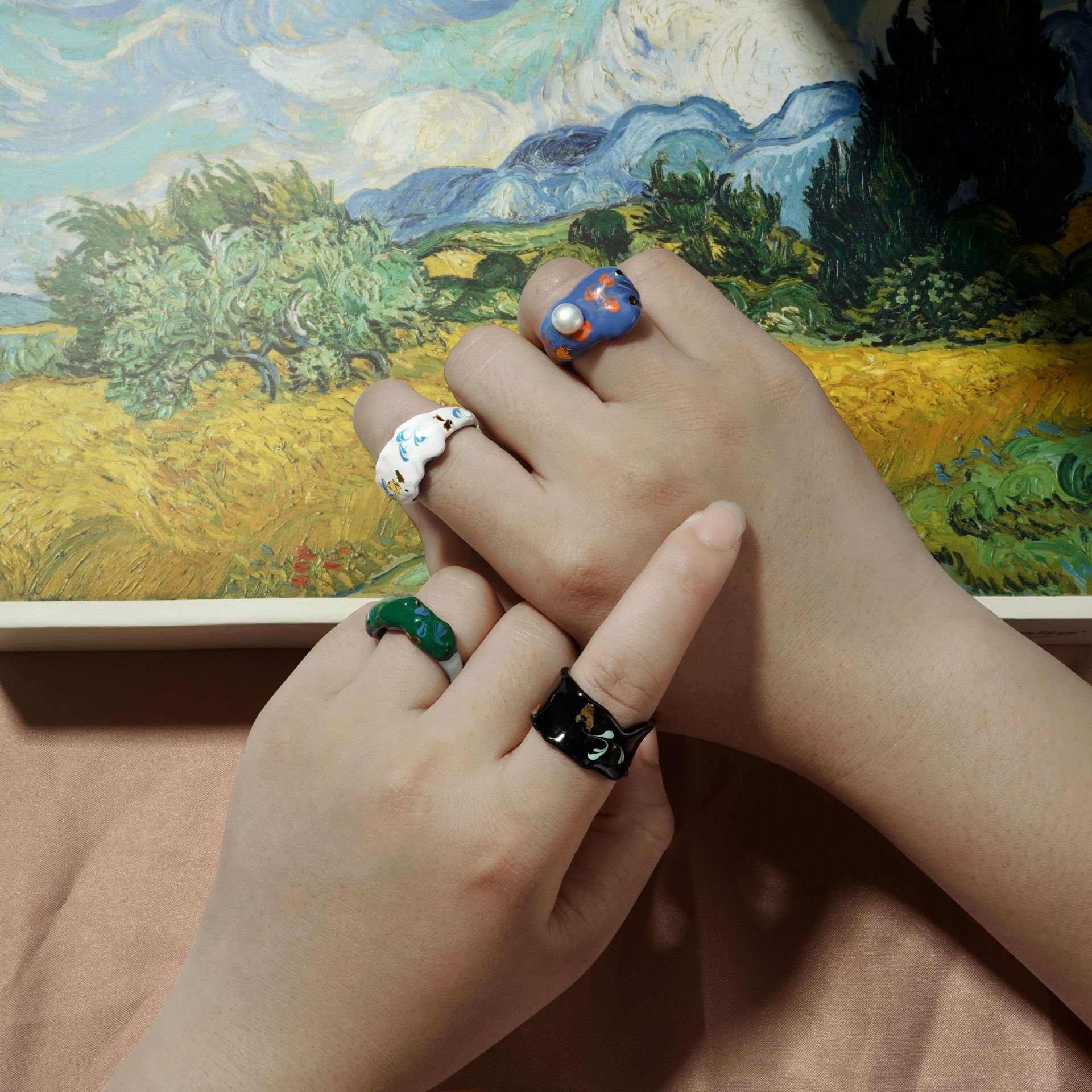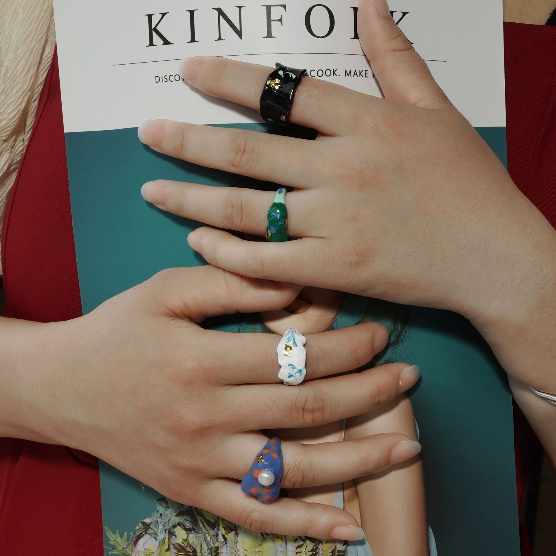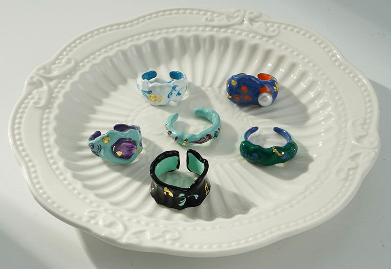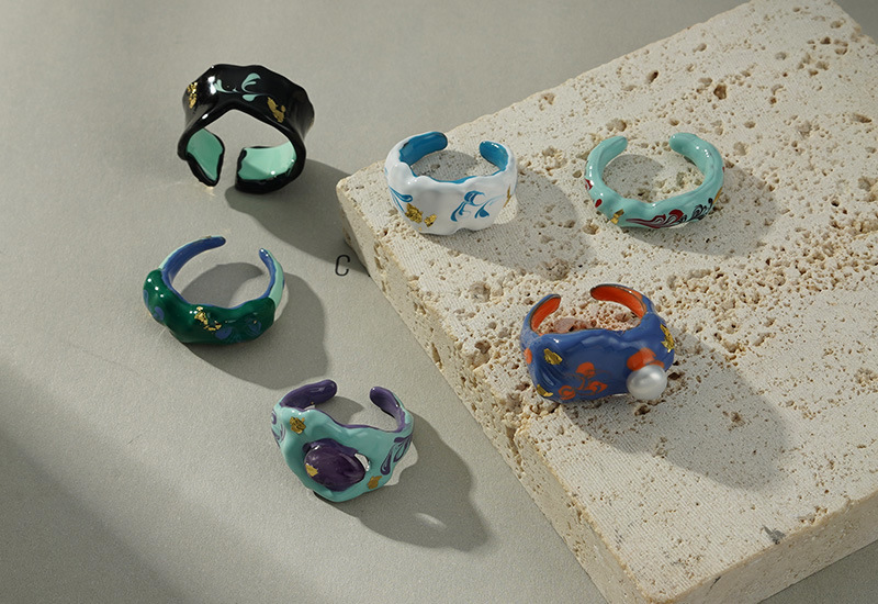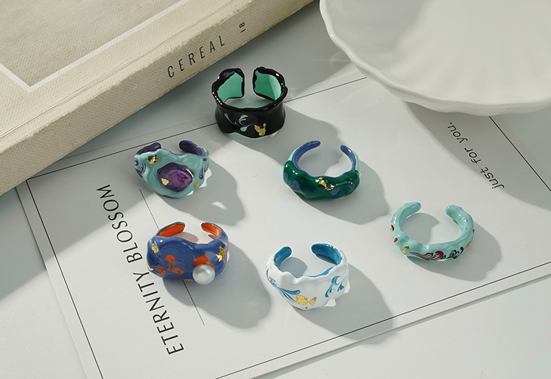 Product information:Type: Ring Treatment Process: dripping oil Color: blue white, blue Orange Pearl, green gold foil, Green Black Style: Women's Material: Metal Style: ins style