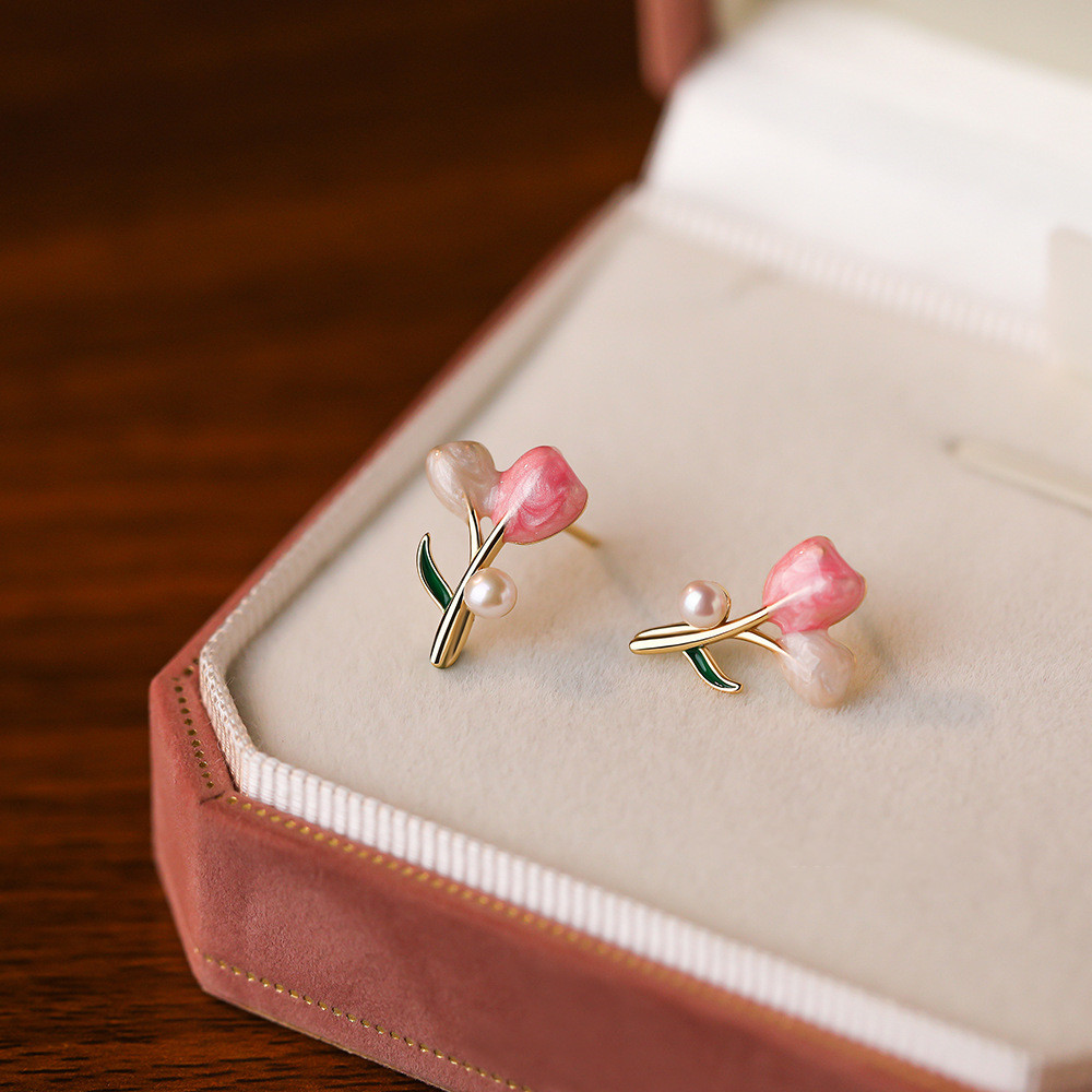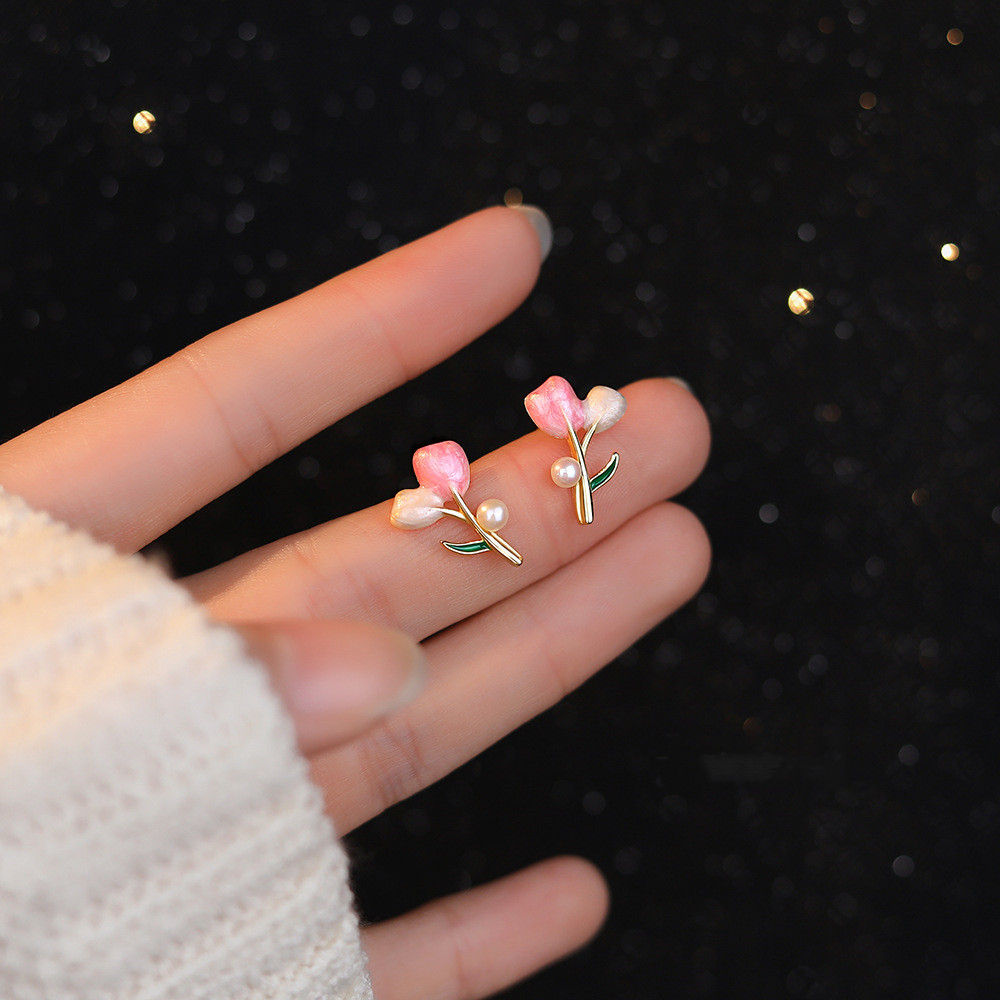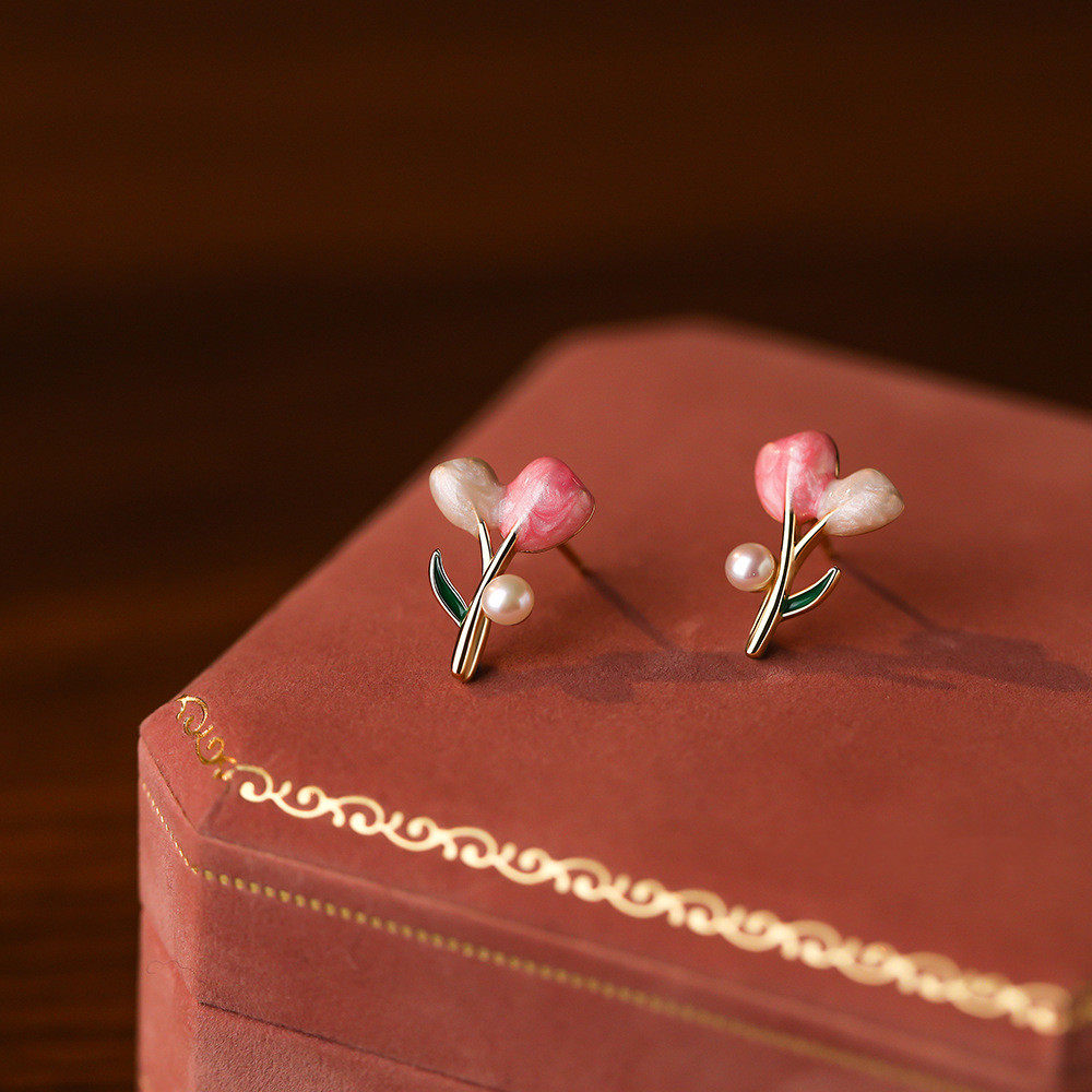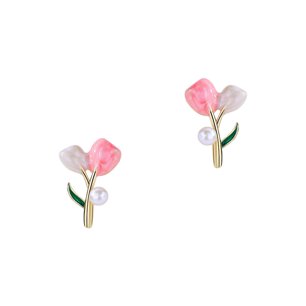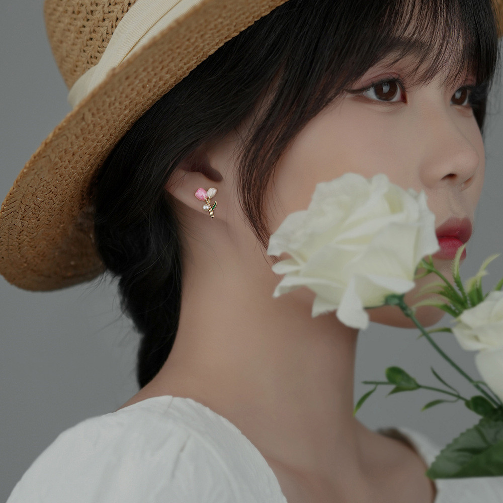 Material: SilverTreatment process: inlaid with zirconShape: FlowersColor: Pink TulipPopular Element: TulipStyle: French VintageSize: 10.5x15.5mmPacking list: