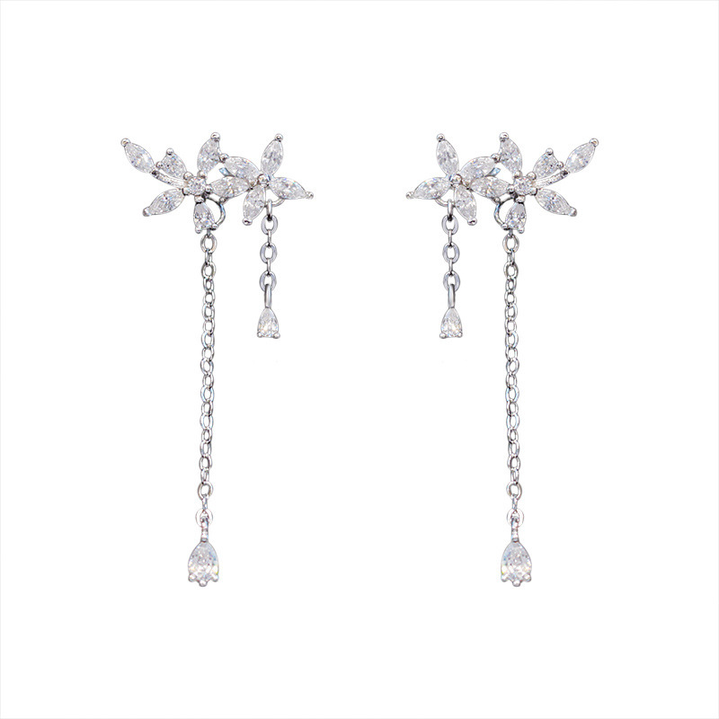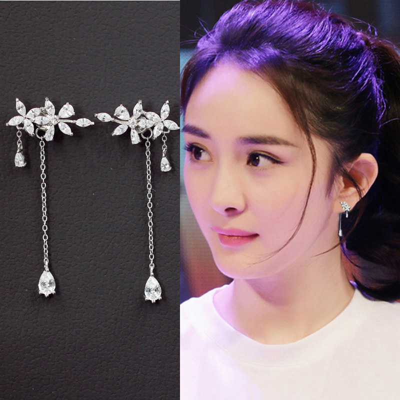 Style: Korean / Korean / KoreanMaterial: SilverTreatment process: diamondType : Stud EarringsStyle : Women'sStyling: FlowersMosaic material: sterling silver set with gemsPrecious metal quality : 2