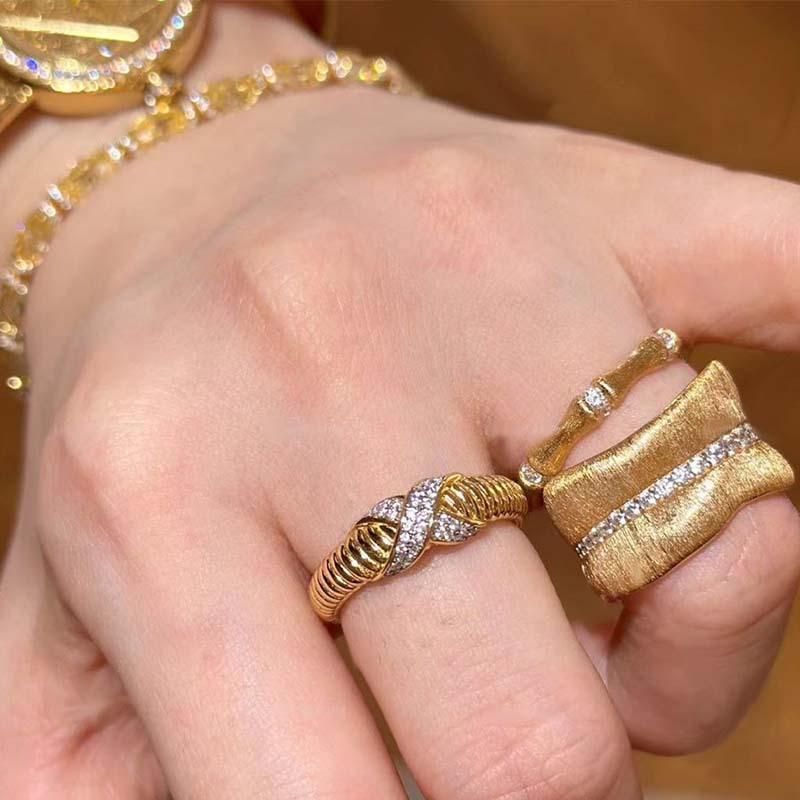 Product information:Type: Ring Treatment Process: Electroplating Color: burlap texture point gold cross ring Material: Copper Shape: Geometry Popular elements: Twist, irregular, group Diamond