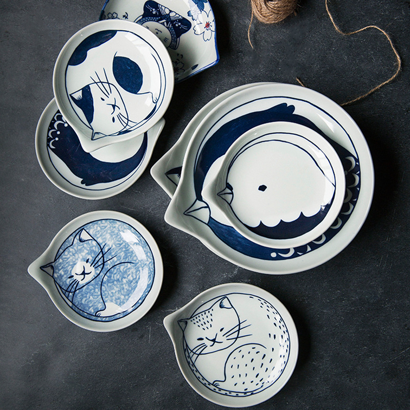 Colors: 5.75" Spotted Cat-Drip Plate, 8" Spotted Cat-Drip Plate, 5.75" Vertical Cat-Drip Plate, 8" Vertical Cat-Drip Plate, 5.75" Sakura Plate-Drip Plate, 8" Cherry Blossom Plate-Water Drop dish