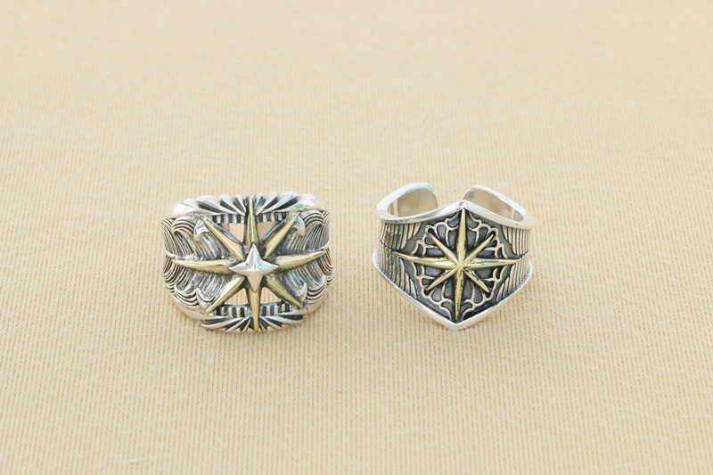 Product Details:Material: silverColor: A ring, B ringPopular elements: eight-pointed starPattern: plainPackage Contents:Ring X1