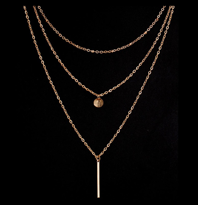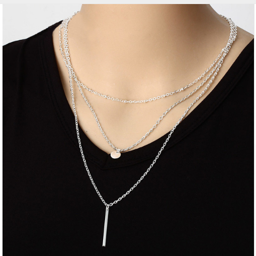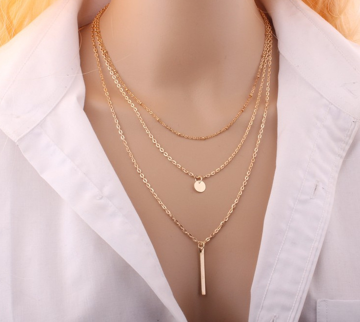 Copper bead chain sequin metal strip multi-layer necklace