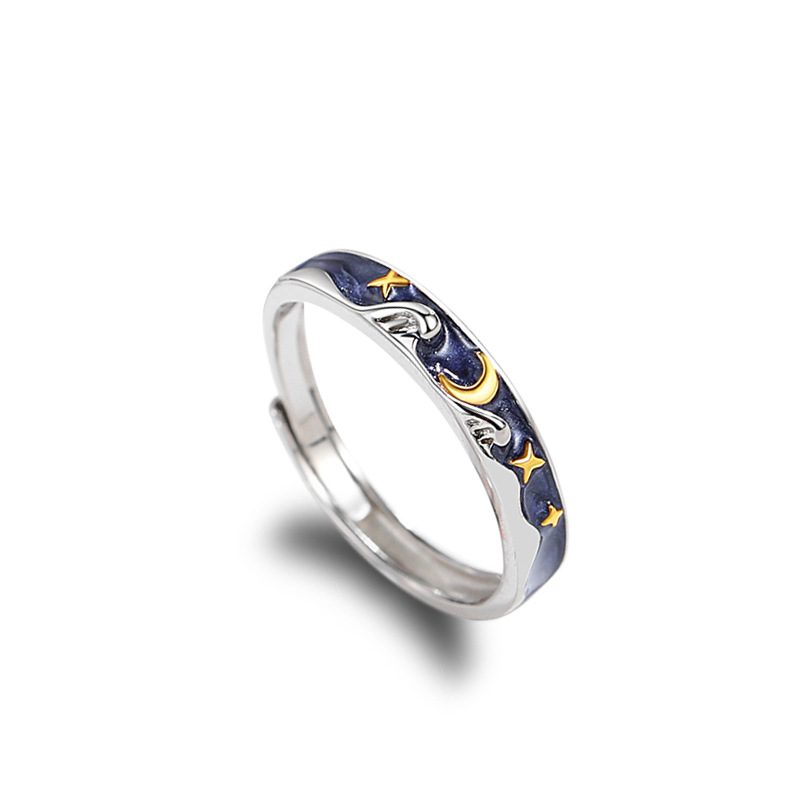 Specifications:Product name: Sun moon ringStyle: Sun moon galaxy seriesMaterial: 925 silverSize: One size adjustable openingProcess: Three layers thickening/color separation electroplating