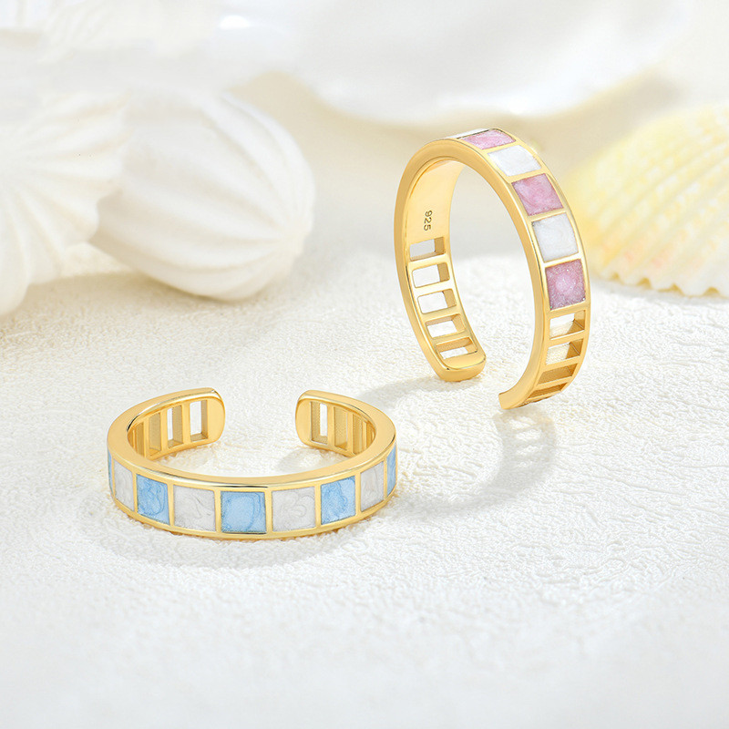 Product information:Color: Pink White Blue White Applicable population: Female Style: Epoxy resin Material: Silver popular elements: Ring, Quadrilateral Style: classic style