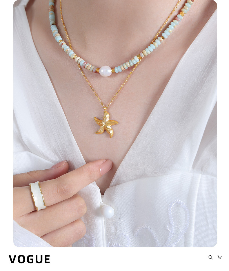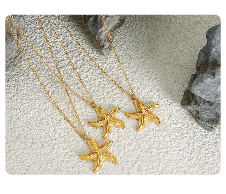 Product information:Treatment Process: Electroplating Color: Gold Pendant material: titanium steel Chain style: O-ring chain Material: titanium steel Modeling: animal/Zodiac Popular elements: Starfish Style: fashion OL