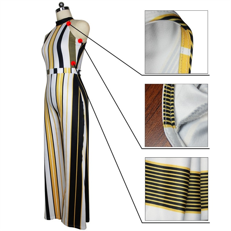 Summer Romper Women Jumpsuit Sexy Ladies Casual Elegant Loose Office Sleeveless Striped Halter Long Plus Size Overalls