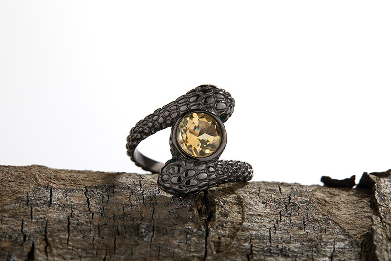 Product information:Treatment Process: inlaid gem Color: LR163 Applicable population: Female Style: Personality Color: Silver is black, gem is citrine Size: No. 14 opening Material texture: S925 silver natural citrine