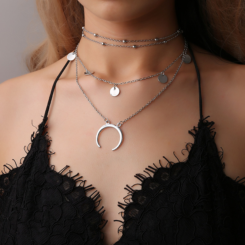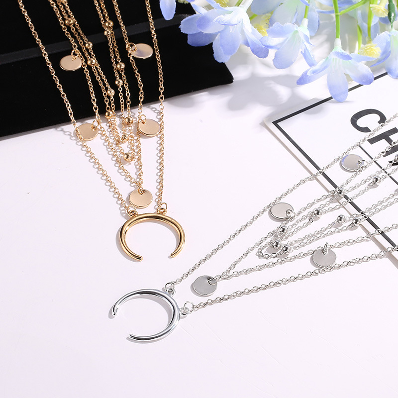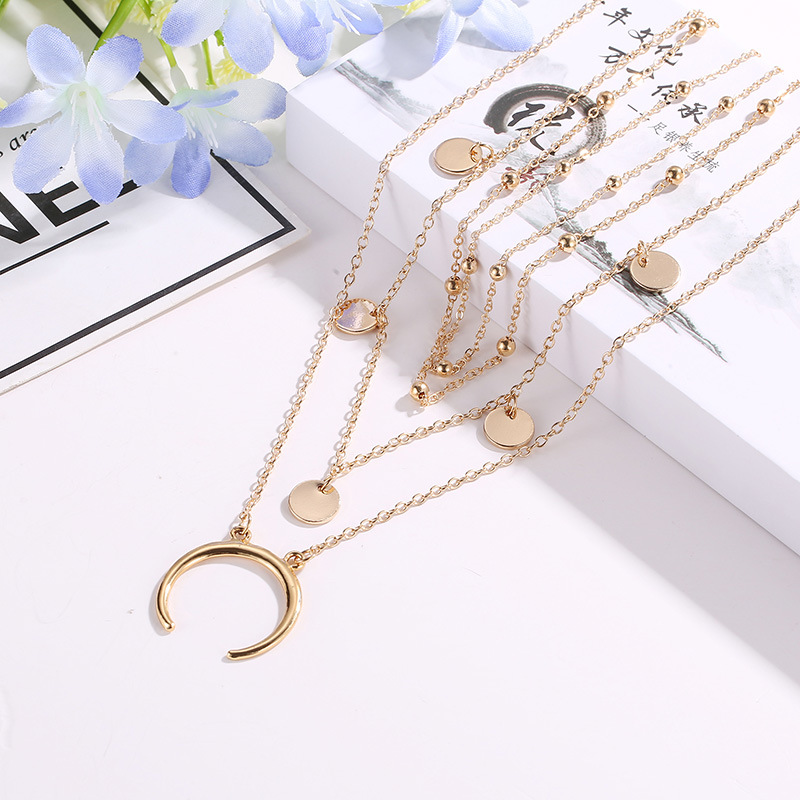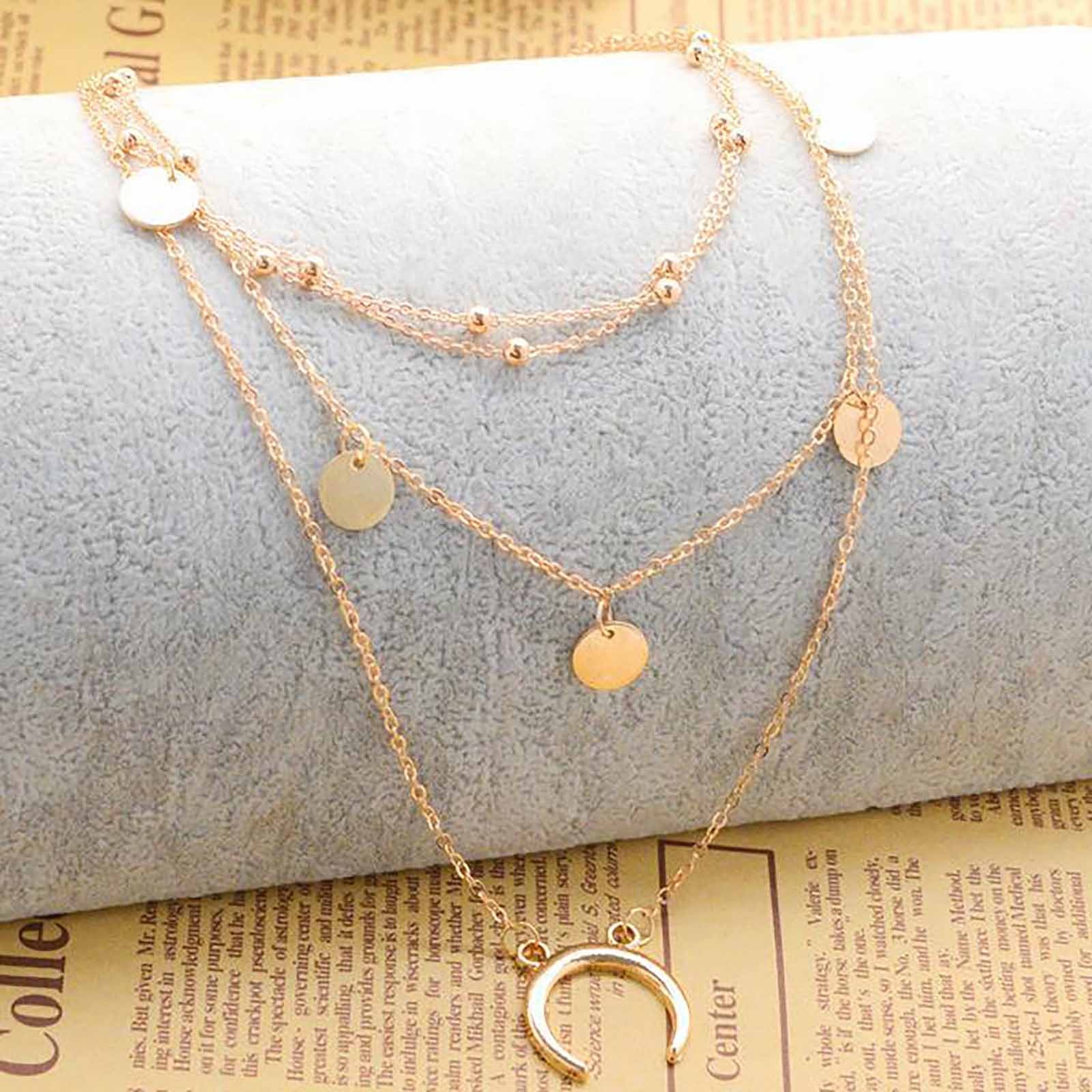 Vintage Multilayer Crystal Turkish Star Moon Necklace Sexy Beach Gold Pendant