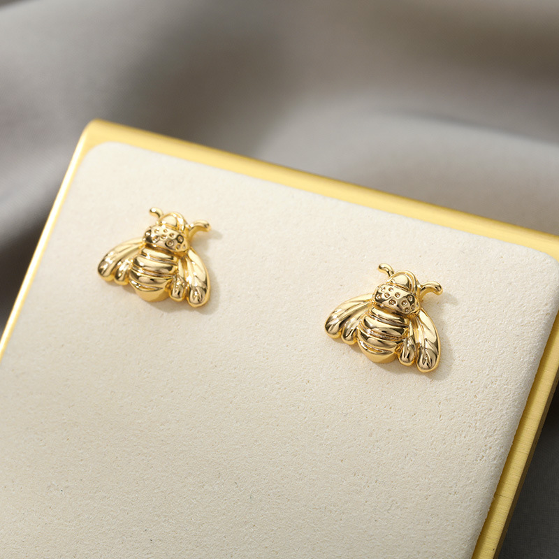 Product information:Style: simpleMaterial : CopperTreatment process: electroplatingType: earringsStyle : Women'sShape: insectImage : InsectColor: gold plated, silverPacking list:Copper earrings x1pair