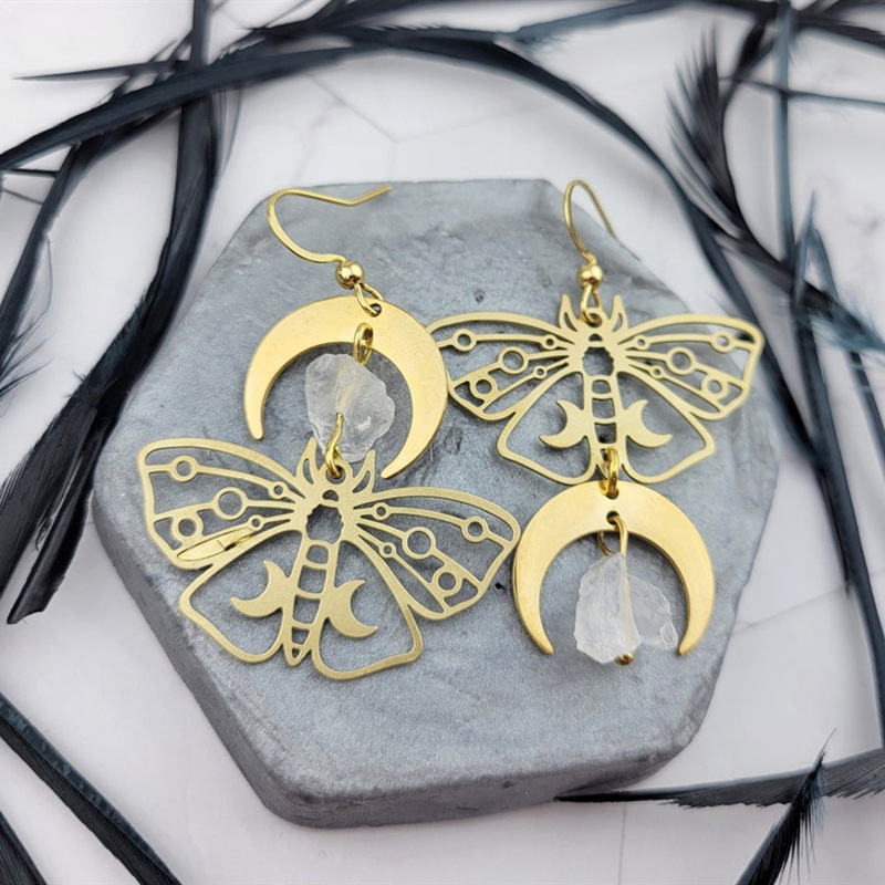 Women's Fashion Gold Plated Moth Moon Drop Earrings