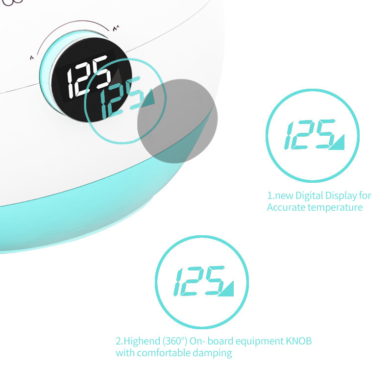 2. Sensitive temperature adjustment, feel. There is a strong sense of experience every time you adjust a gear, the temperature can be adjusted in one gear, and one gear is 1C. The temperature can also be directly set to the desired temperature range of 35-125°C through the quick adjustment knob