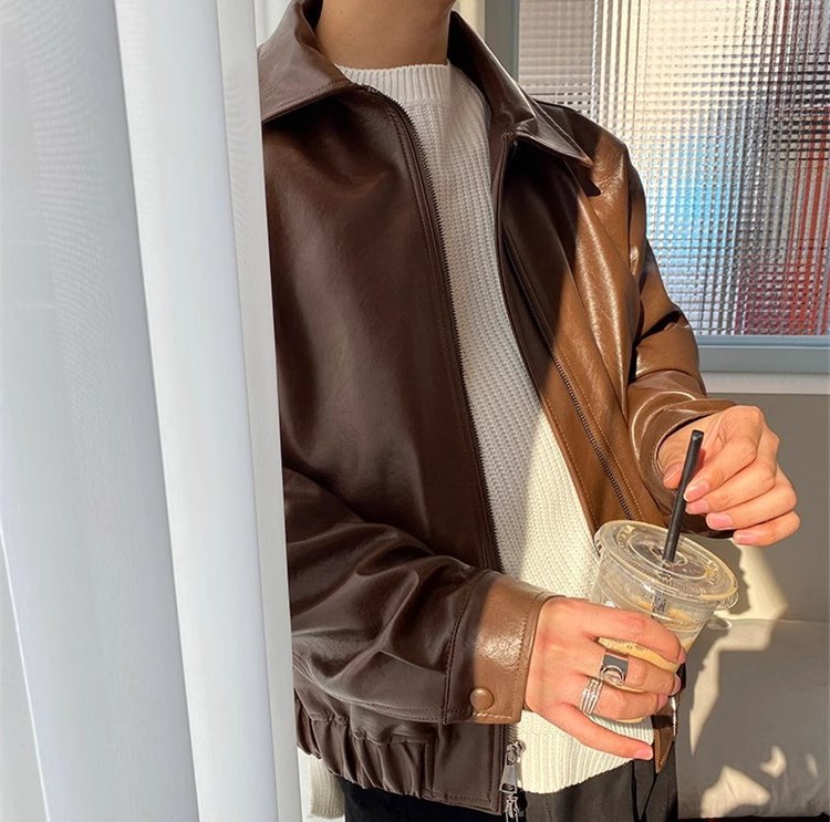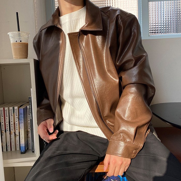 Product information:Style: Korean styleVersion type: LooseCollar type: LapelFlip: zipperLeather: PUMaterial composition: Polyester Fiber (polyester)Process: IroningColor: BrownSize: M,L,XL,XXL