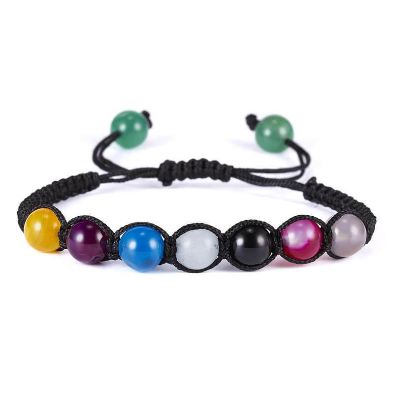 2020 AliExpress Hot Seven Chakra Bracelet Natural Stone Magnetic Buckle Beaded Pu Leather Bracelet Woven Bracelet Wholesale