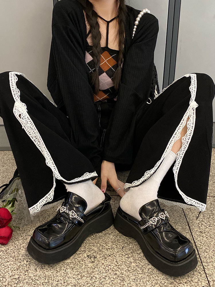 Fabric name: LaceMain fabric composition: cashmereWaist shape: high waistColor: blackElasticity: no elasticityPant type: wide leg