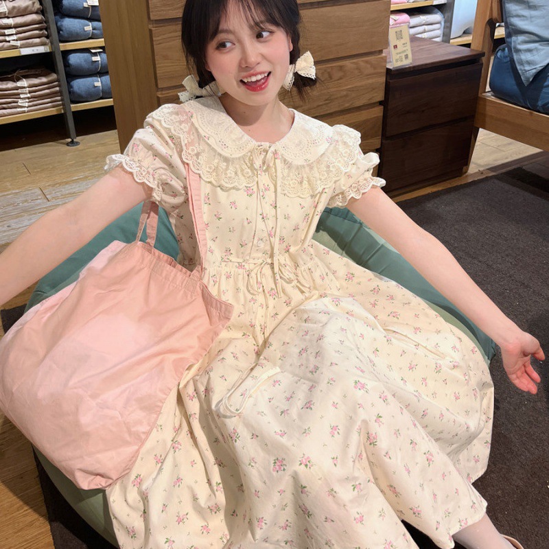 Product information: Fabric name: Polyester Color: Apricot Size: S ,M ,L,XL,XXL Skirt length: mid-length skirt Sleeve length: short sleeve Skirt Category: Dress Popular elements: Bow