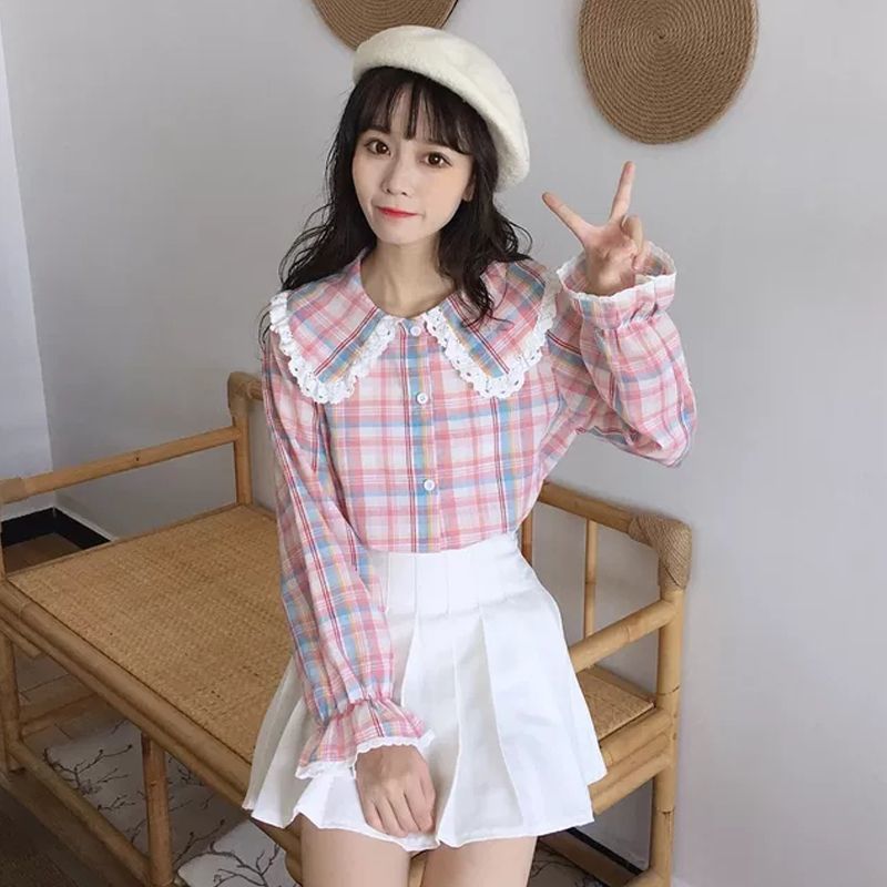 Specification:Version: LooseLength: Super short (length ≤40cm)Collar type: Doll collarSleeve type: Lotus leaf sleevePopular elements: StitchingPacking list: Shirt x1