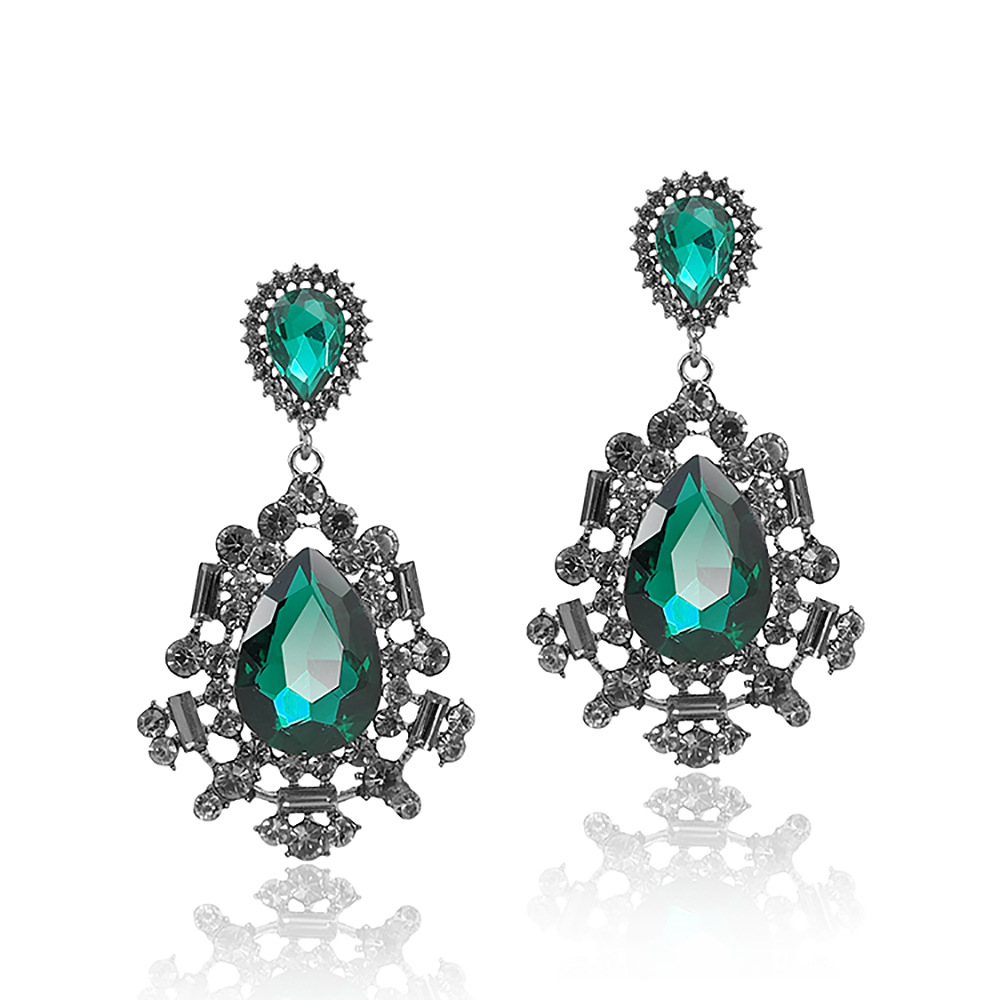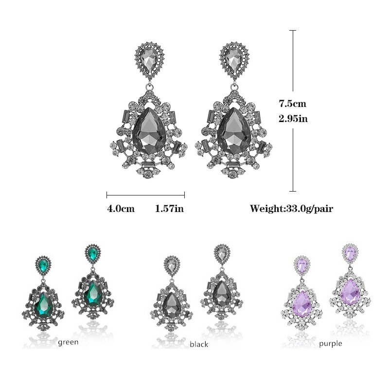 Product information:Material: CrystalStyle: VintageStyle: Women'sShape: drop shapePackaging: Individually packedColor: green, black, light purplePacking list:Earrings X1
