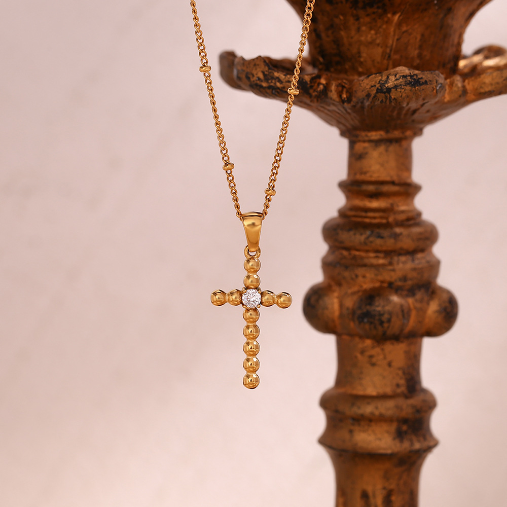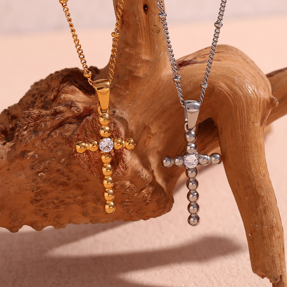 Color: Middle zircon beaded pendant necklace-gold, middle zircon beaded pendant necklace-steel color