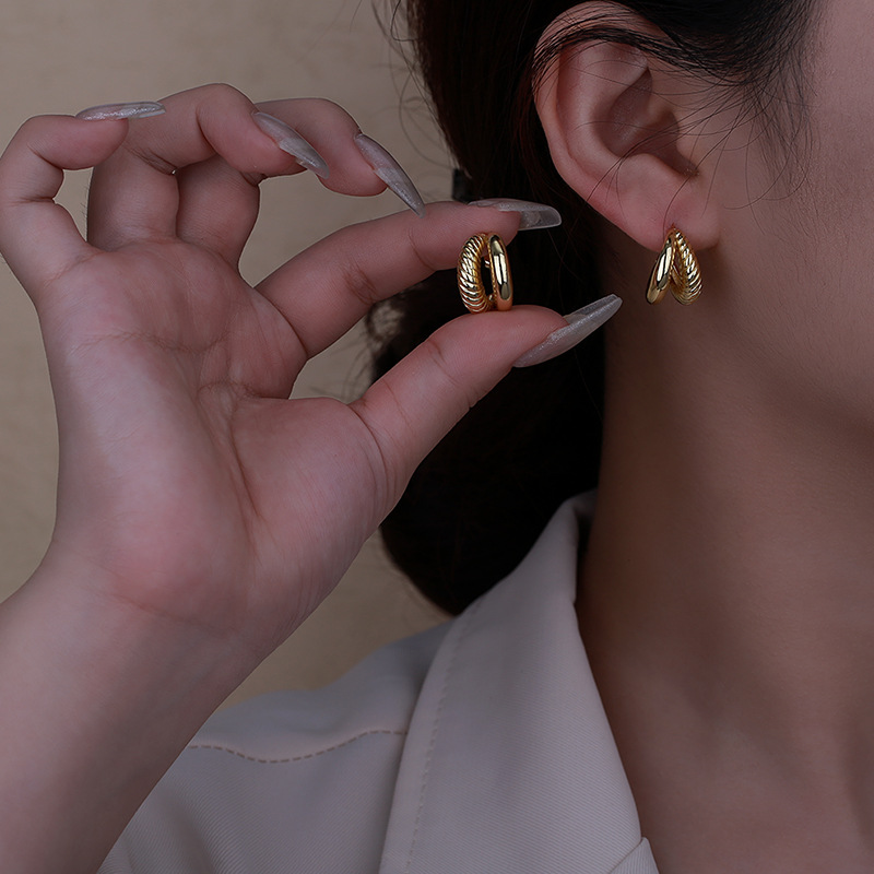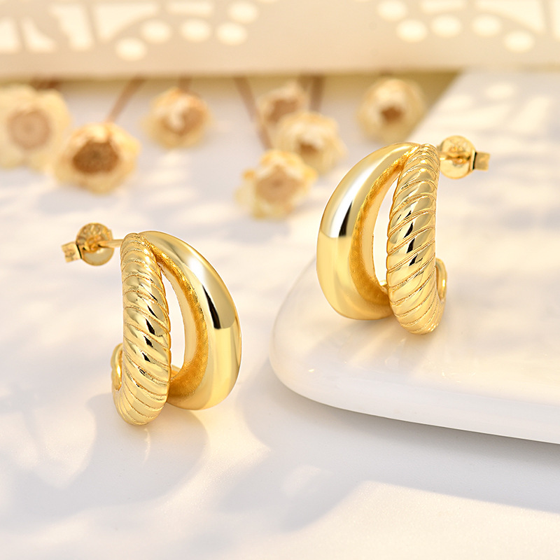 Double-layer twisted stud earrings colorfast C- shaped irregular earrings