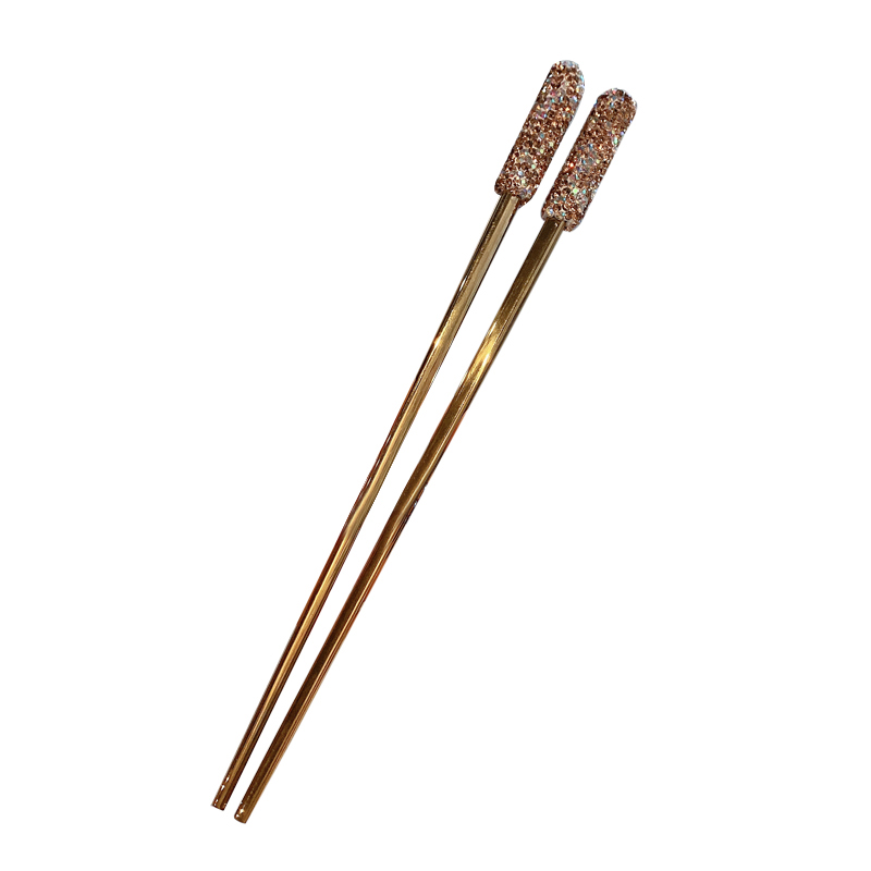 Color Classification: A pair of diamond-studded golden chopsticks, a pair of diamond-studded white chopsticks, a pair of diamond-studded red chopsticks, a set (gold+white+red)
