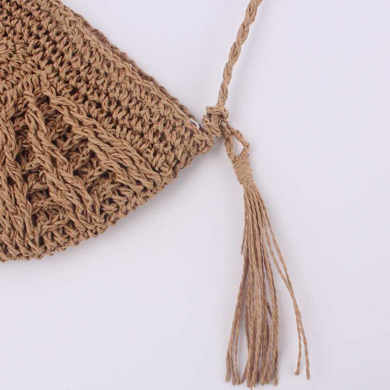 Simple Semi-circular Tassel Women's Straddle Straw Bag Hand-made Single Shoulder Woven Bag Beach Bag