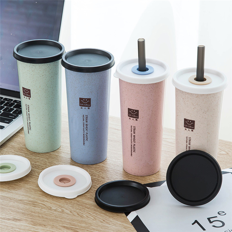 P464 wheat straw cup adult student drinking cup double cover plastic cup with a Korean version of the creative single-layer cup