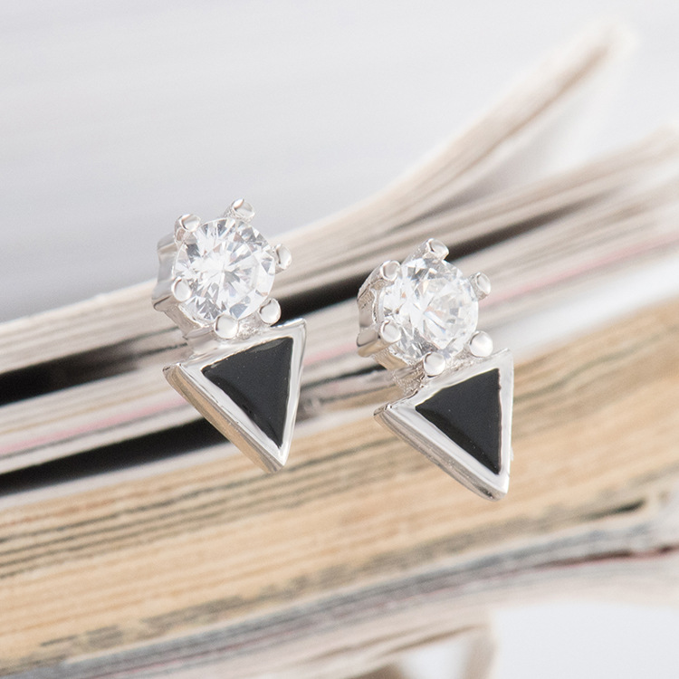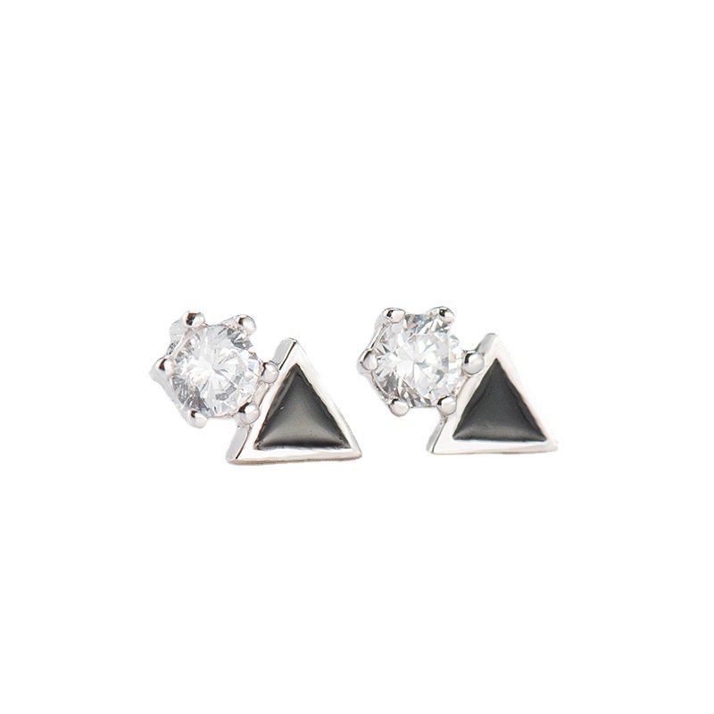 Sterling Silver Epoxy Fashion Stud Earrings Inlaid With Gemstone Triangle Ear Pin Ear Jewelry