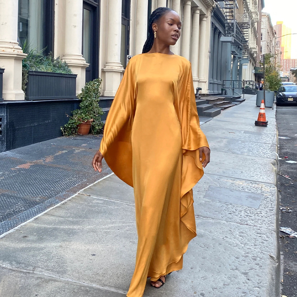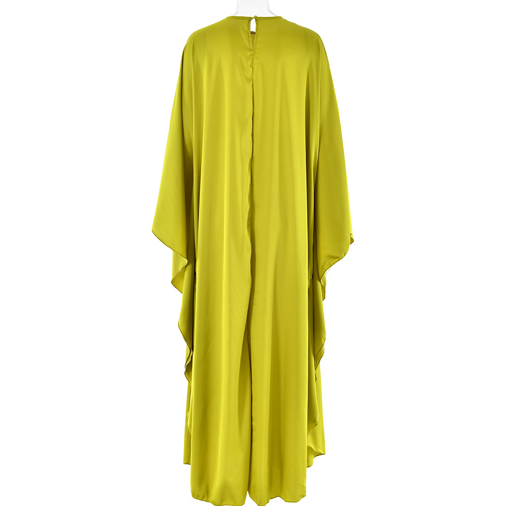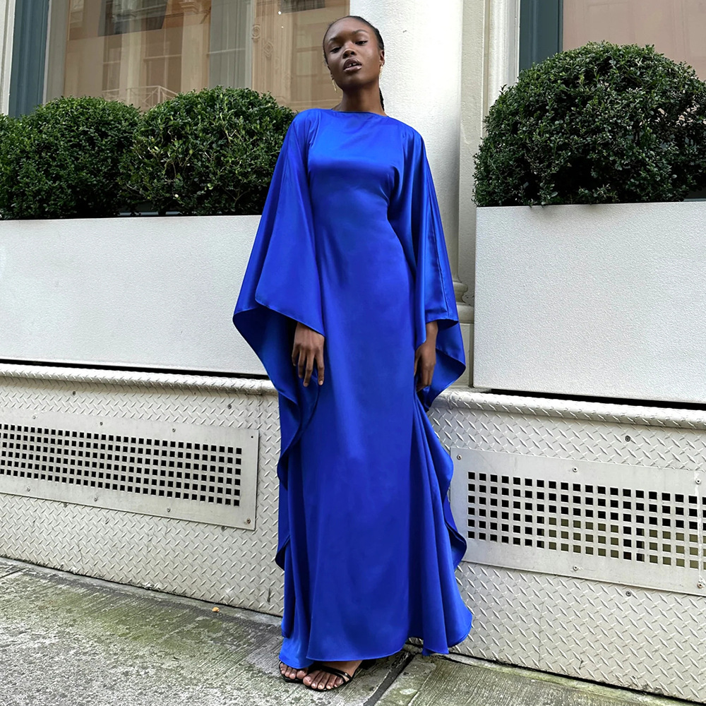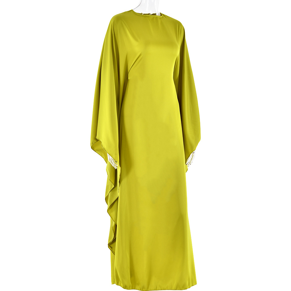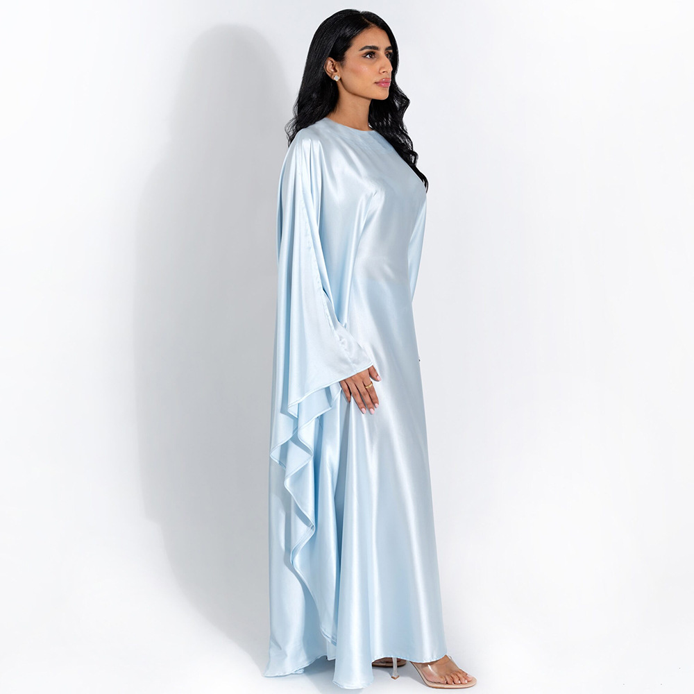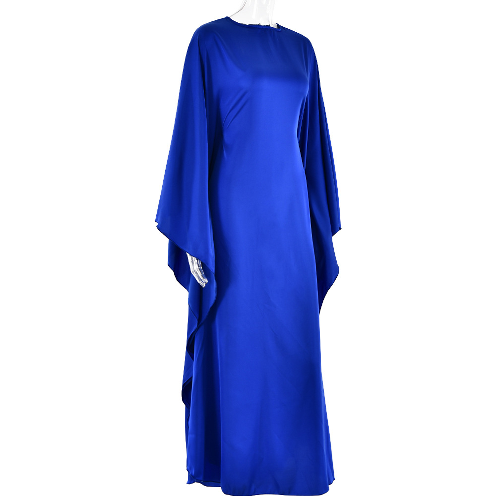 Color: Black, mustard green, royal blue, light blue, using elastic satin chiffon fabric, wide sleeve robe design, note: Belt Control size