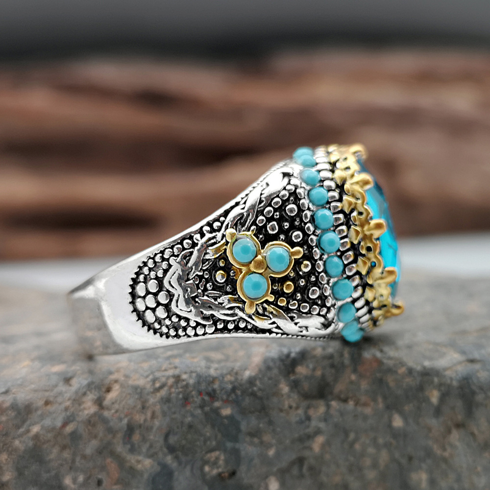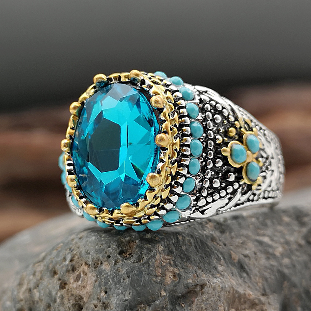 Inlay material: ancient silver plated with artificial gems/semi-precious stones