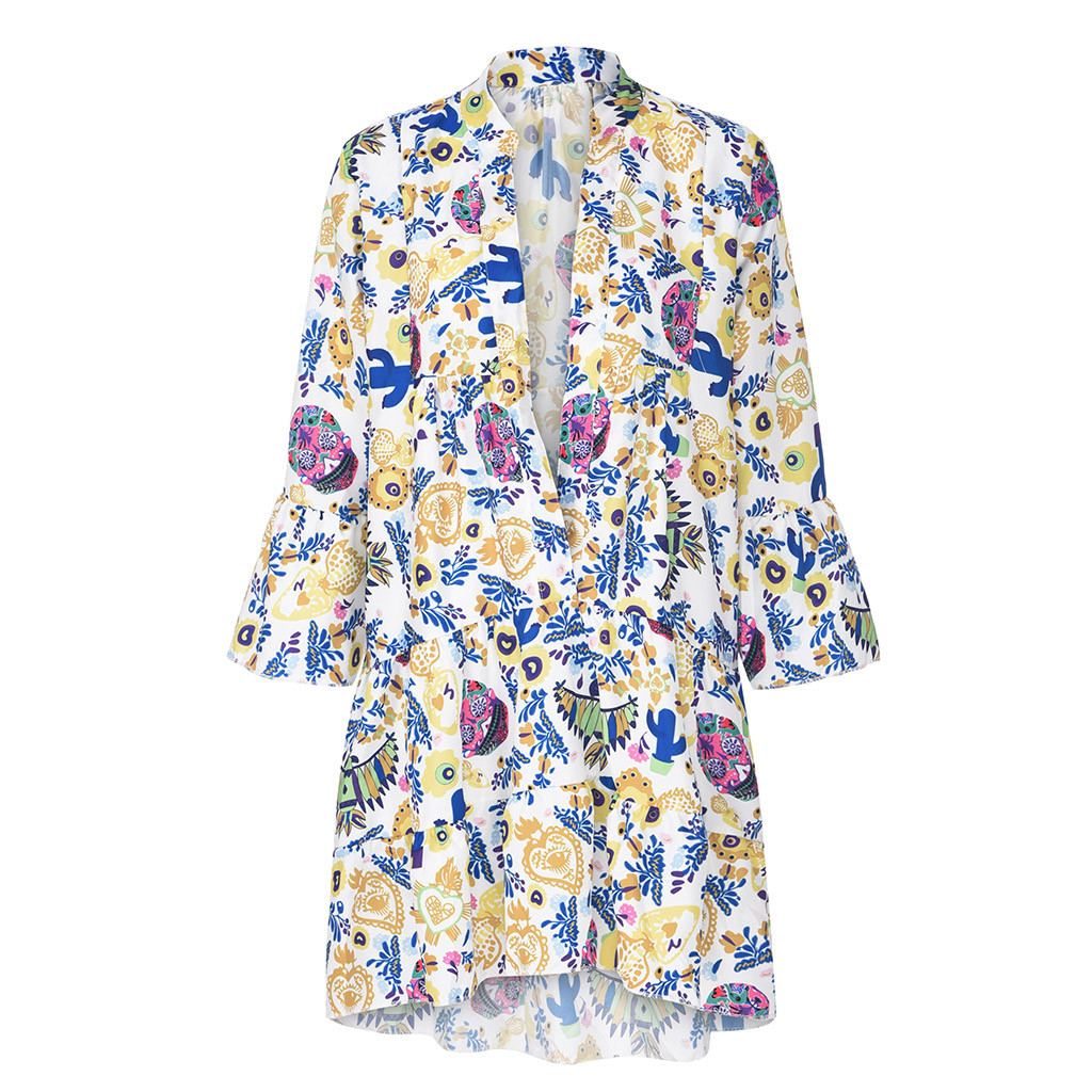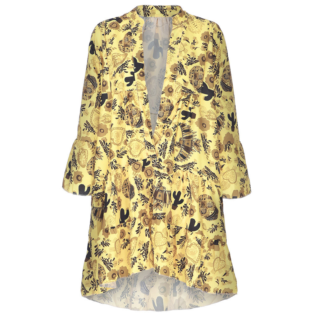 Fabric Name: PolyesterMain fabric composition: polyester (polyester)Main fabric content: 71% - 80%Placket: single breastedPop: print, ruffle, panel