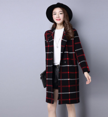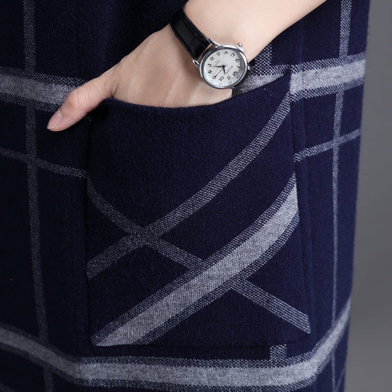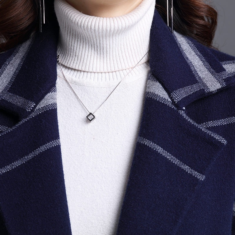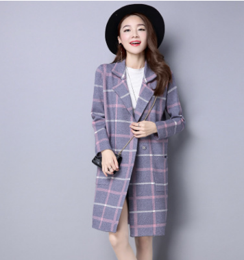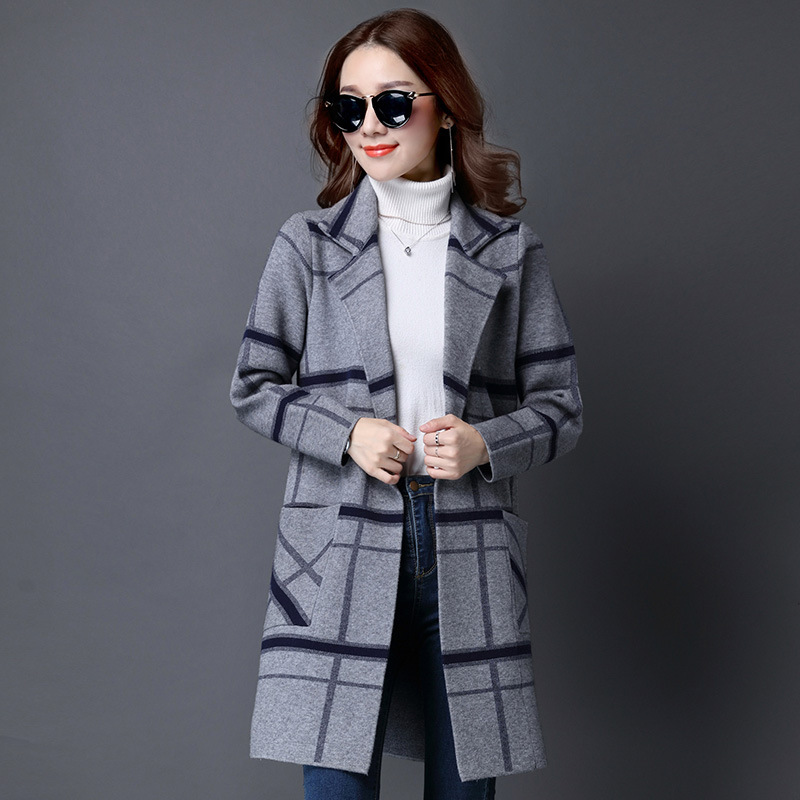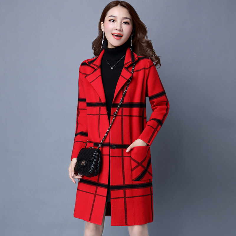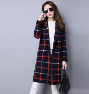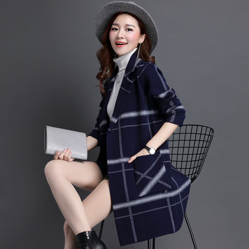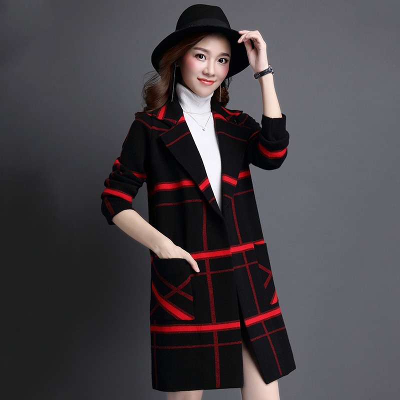 Autumn and winter new cardigan coat sweater suit collar large lattice