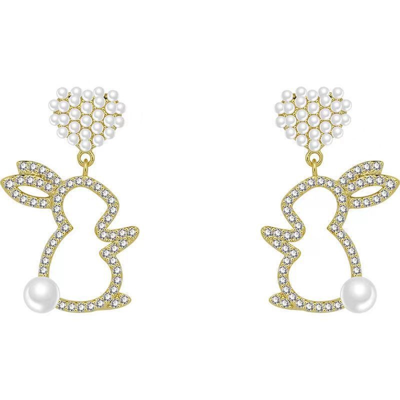 Pearl Bunny Earrings For Women Silver Pin Earrings