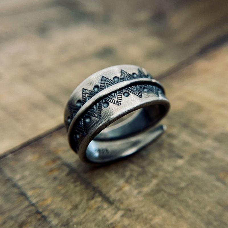 Bohemian Retro Vintage Finish Ring Female Opening Carved