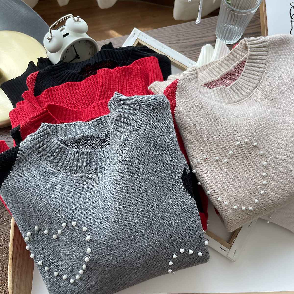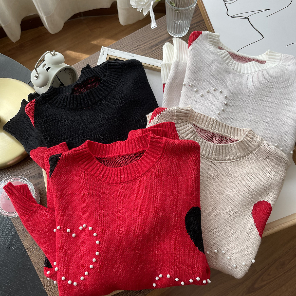 Color: black, white, apricot, red, gray