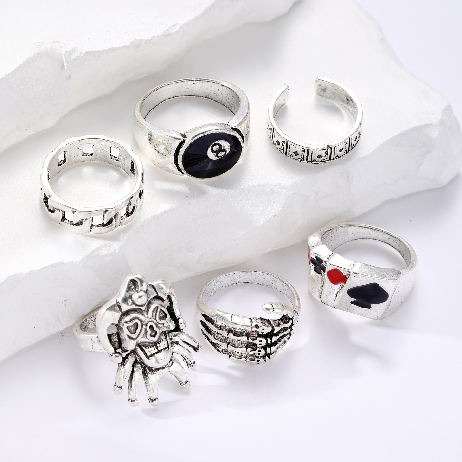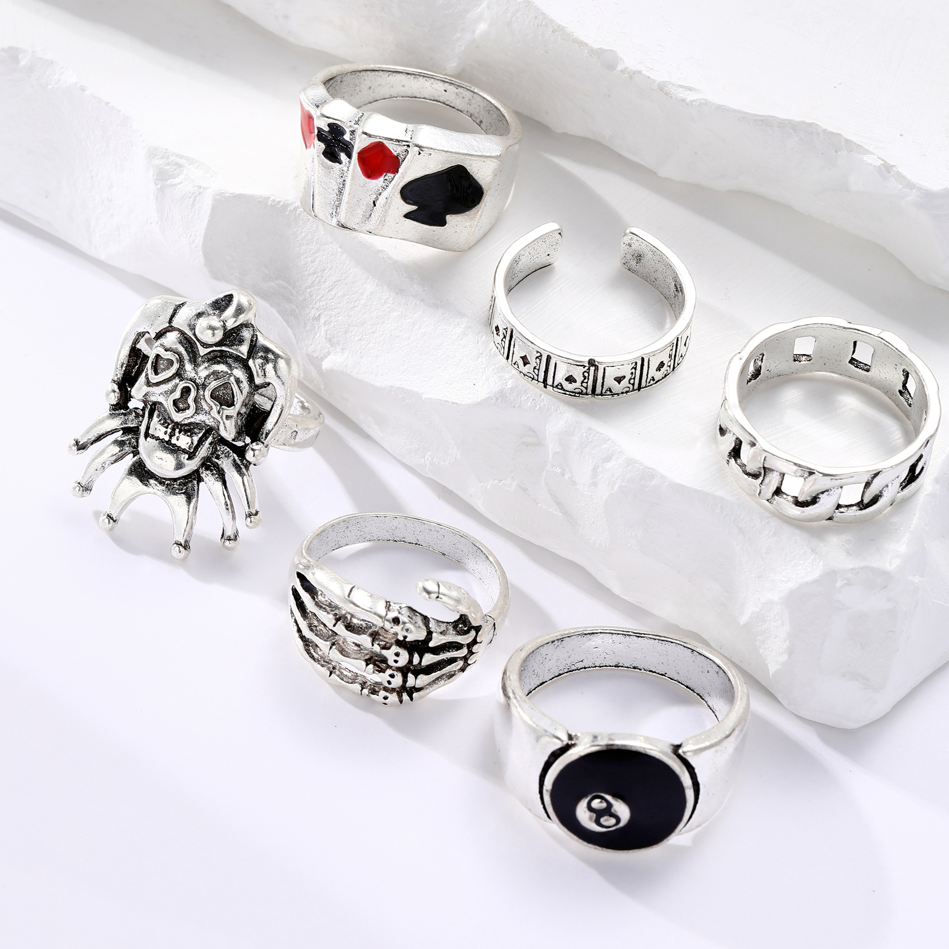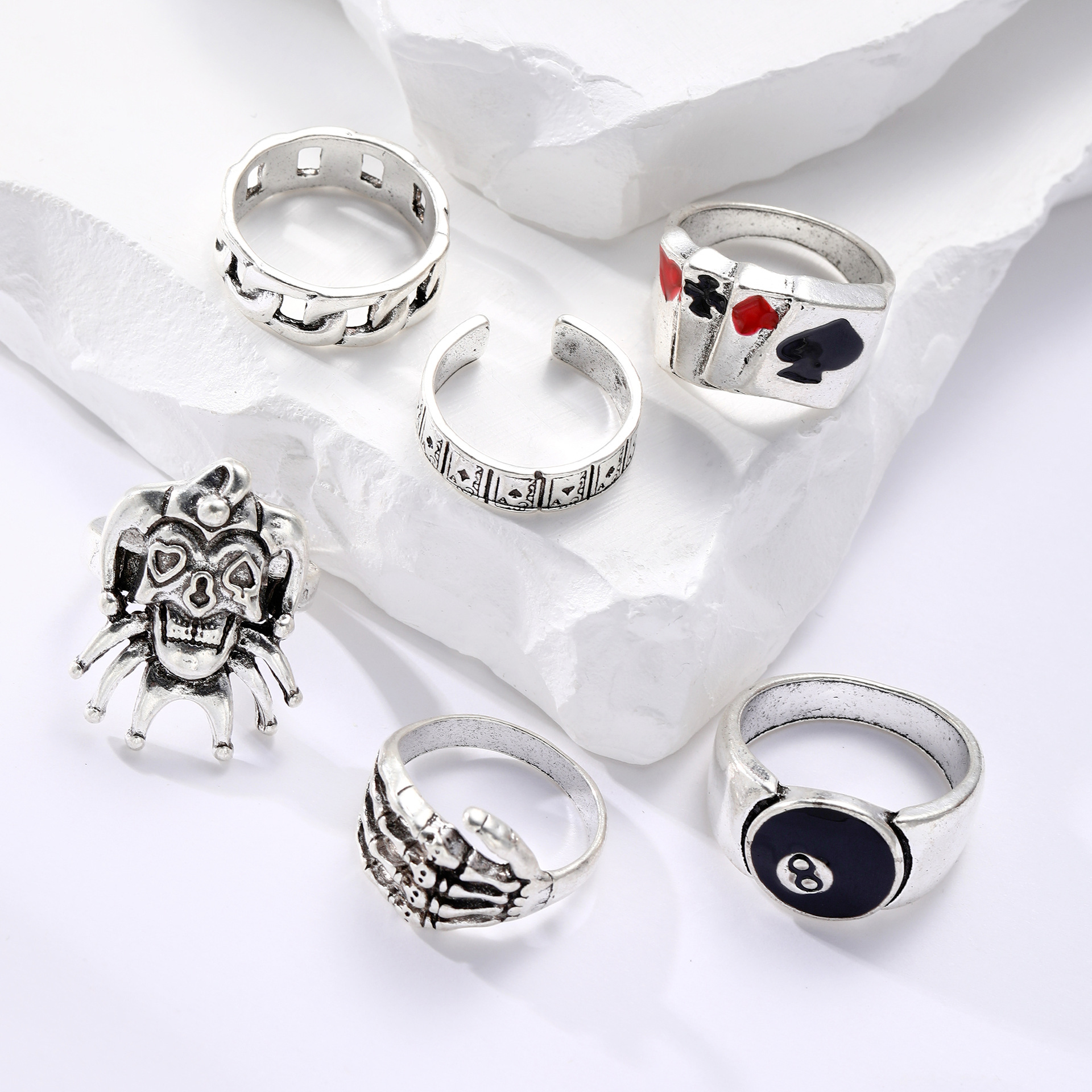 Product information:Color: 5848501Applicable people: UnisexStyle: ring suitMaterial: AlloyModeling: letters/numbers/textPopular elements: skullStyle: Retro