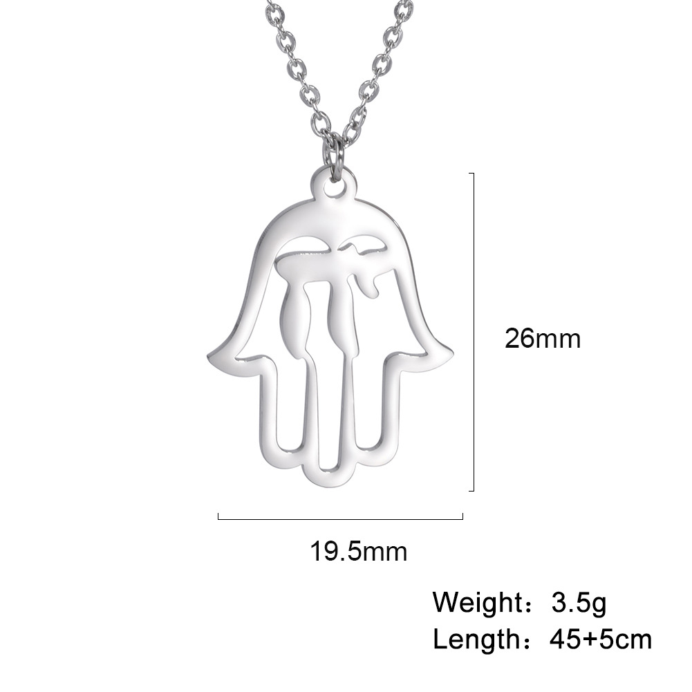 Product information:Color: SteelApplicable people: UnisexPendant material: titanium steelStyle: Hollow Hamsa Palm necklaceChain style: O-shaped chainMaterial: Stainless steelStyle: PersonalityCircumference: 41cm (inclusive)-50cm (inclusive)