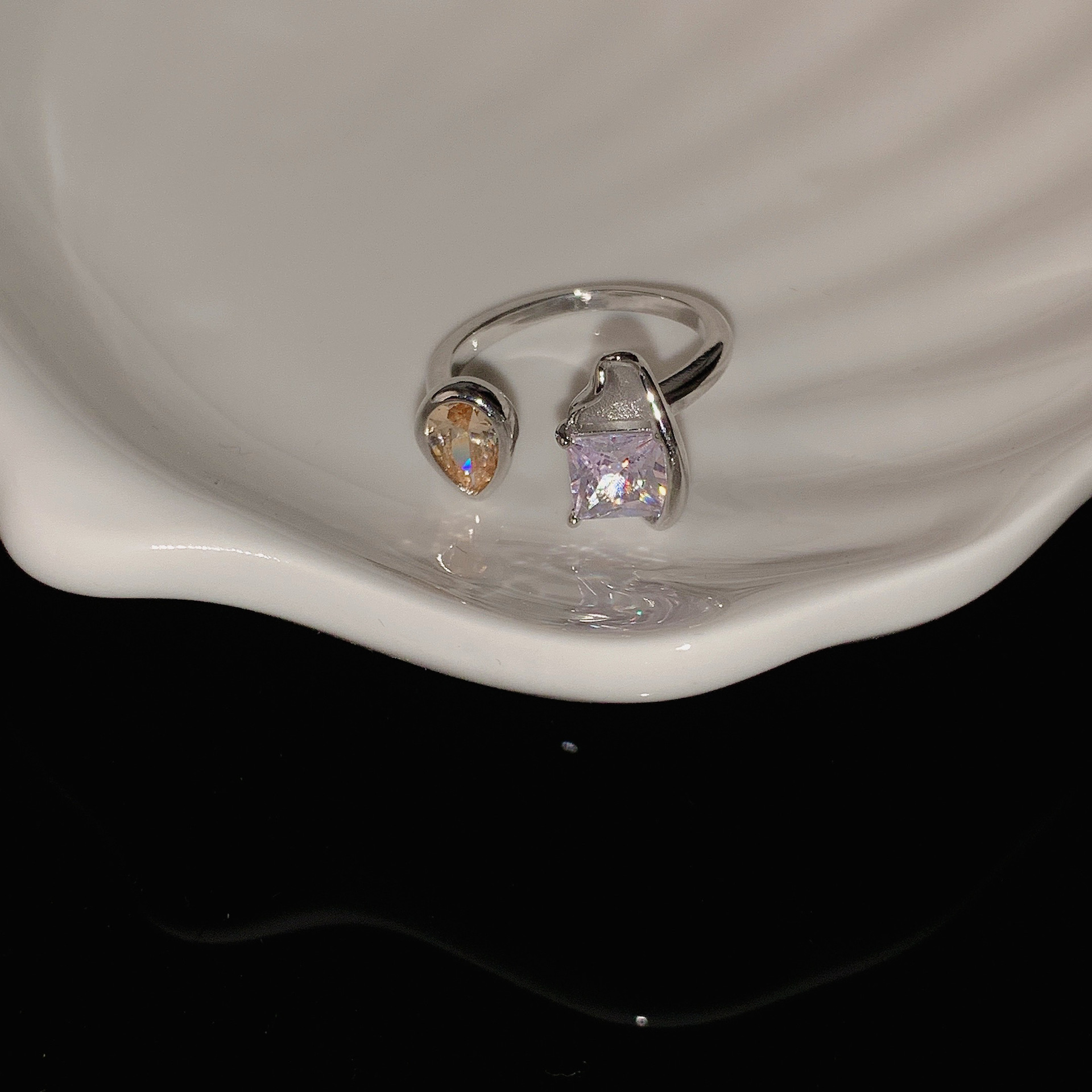 Product information:Treatment process: electroplatingPlace of Origin: QingdaoStyle: Women'sColor: green diamond, lake blue, champagneSize: No. 5, No. 6, No. 7, No. 8Popular elements: metal Packing list:Ring x1