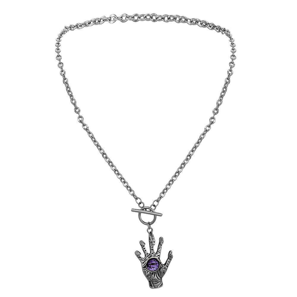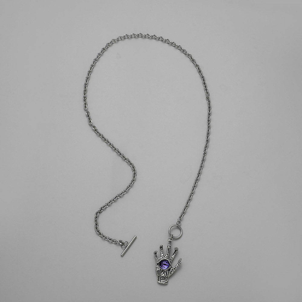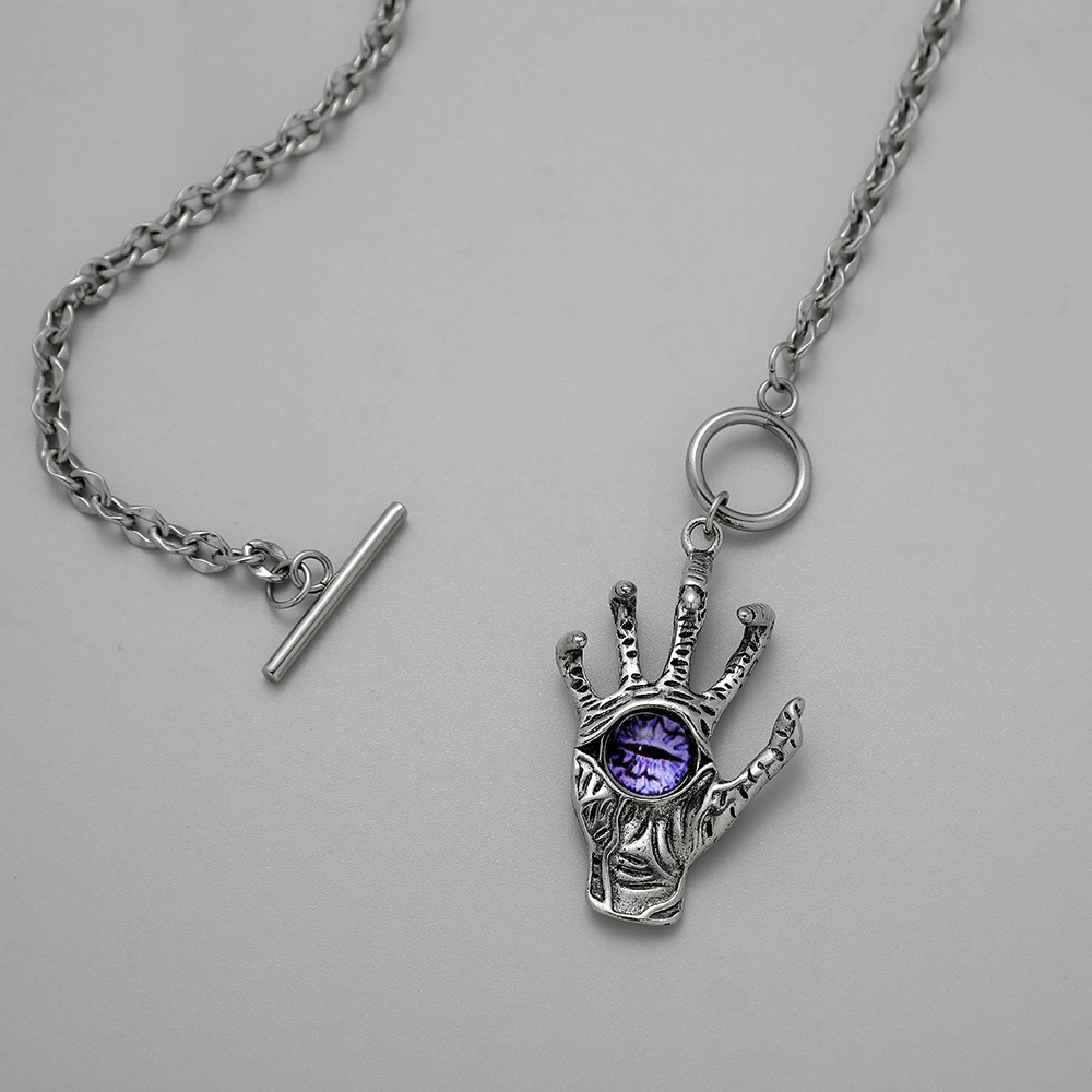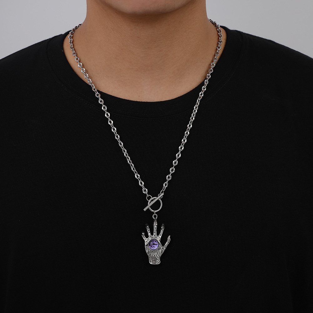 Product information:Style: Hip HopMaterial: titanium steelTreatment process: electroplatingType: NecklaceStyle: Men'sColor: Demon's Hand and Demon Eye x2587Package:Stainless Steel Necklace X1