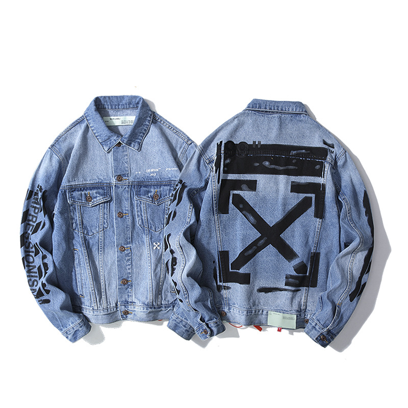 New Men'S Casual Basic Arrow Letter Graffiti Denim Jacket