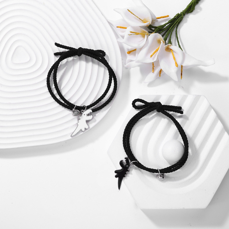 A Pair Of New Cartoon Black And White Dinosaur Matching Bracelets