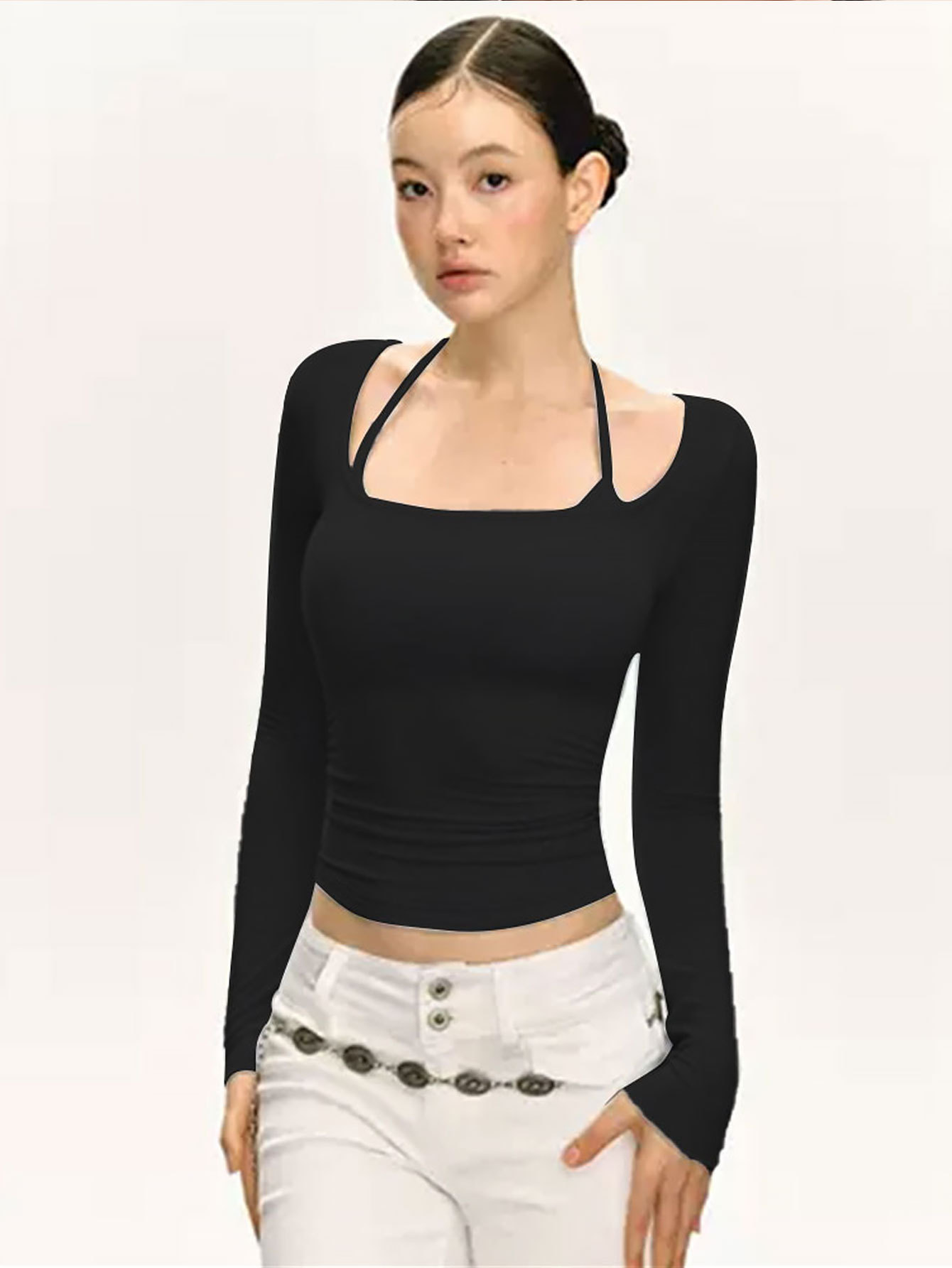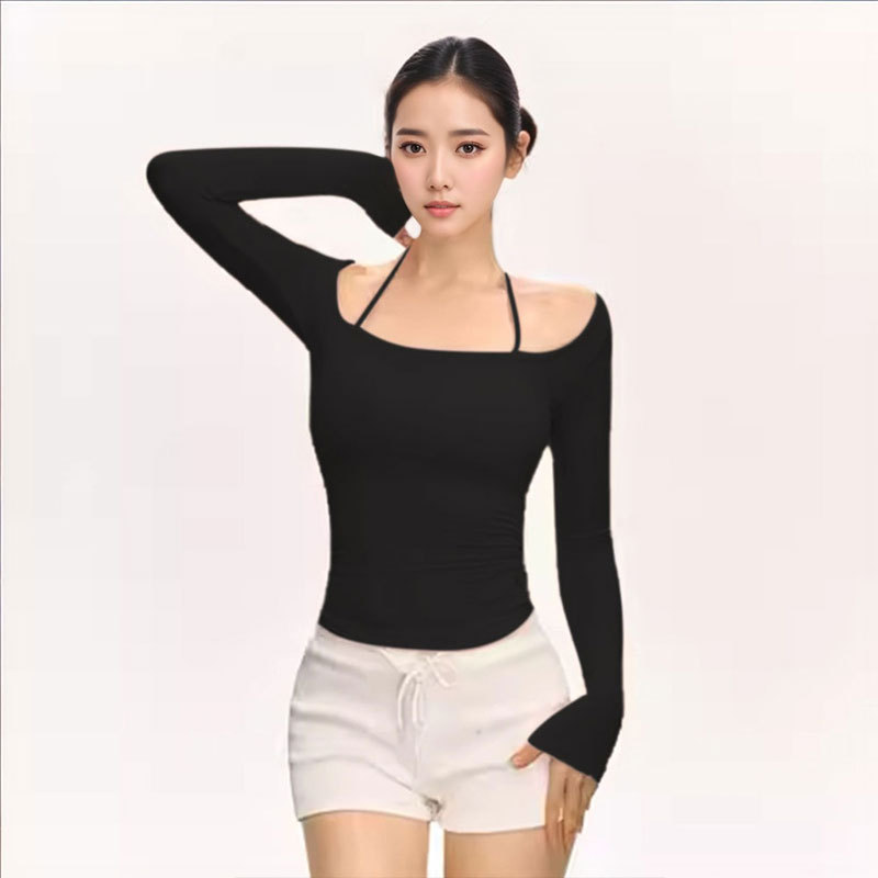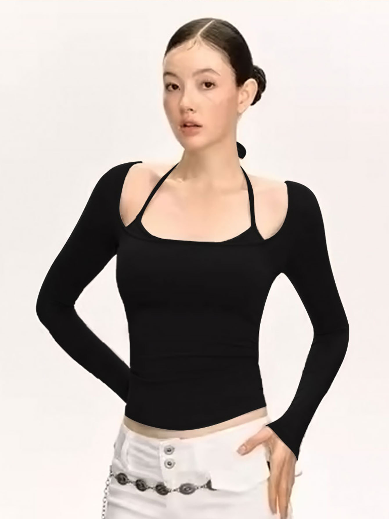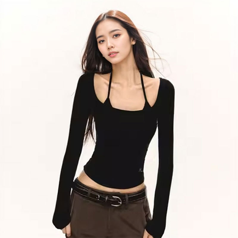Product information: Fabric name: viscose fiber Color: Black Main fabric composition: viscose fiber Size: S,M,L,XL Style type: Street hipster Sleeve length: long sleeve Popular elements: slim fit Style: Halter Style: Trendy