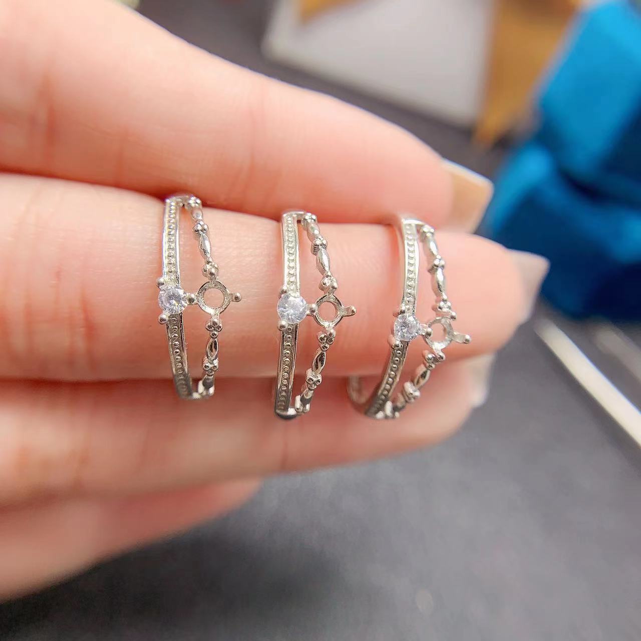 Product information:Color: white gold plated Applicable population: Female Size: adjustable opening Material: Silver Shape: Geometry Main stone size: 3 * 3mm