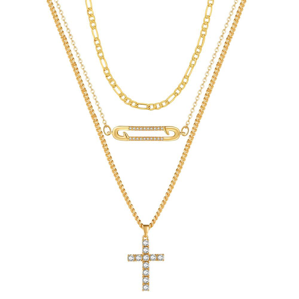 Product information:Type: necklace Color: Cross necklace single sale, clip necklace single sale, 3:1 chain necklace single sale Material: Copper Popular elements: Geometry Style: Women's Shape: Geometry Style: Simple