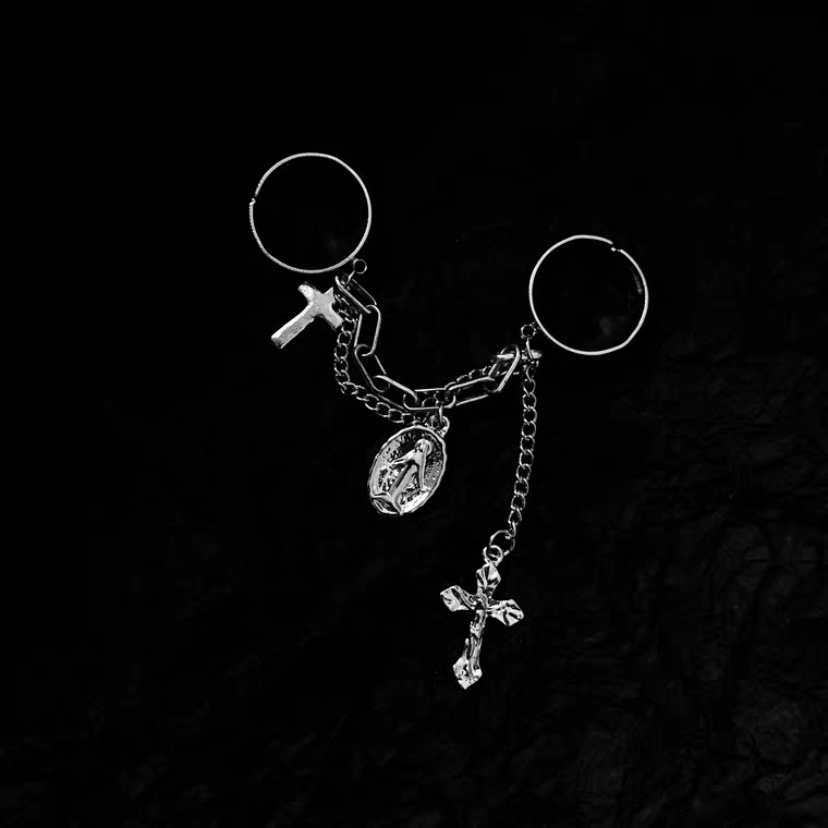 Vintage Cross One Piece Ring Female Double Fingers Jesus