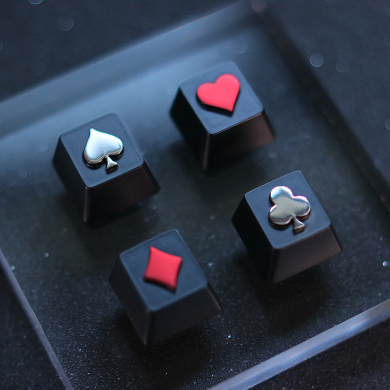 Material: metalColor classification: Spades, hearts, grass flowers, square pieces, a full set of 4 piecesStyle: keycap
